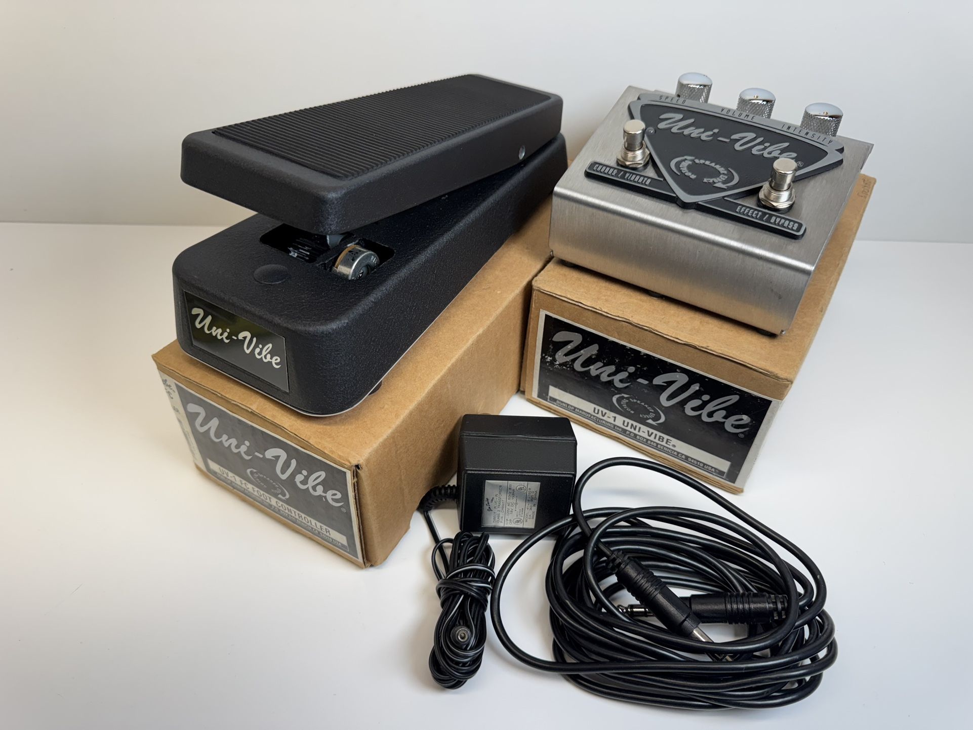 Jim Dunlop UV1 Uni-Vibe Guitar Pedal Set (Like New In The Box) Both units are in pristine condition, complete with cords. Available for purchase at The Thrift Shop Village in Hayward, California.