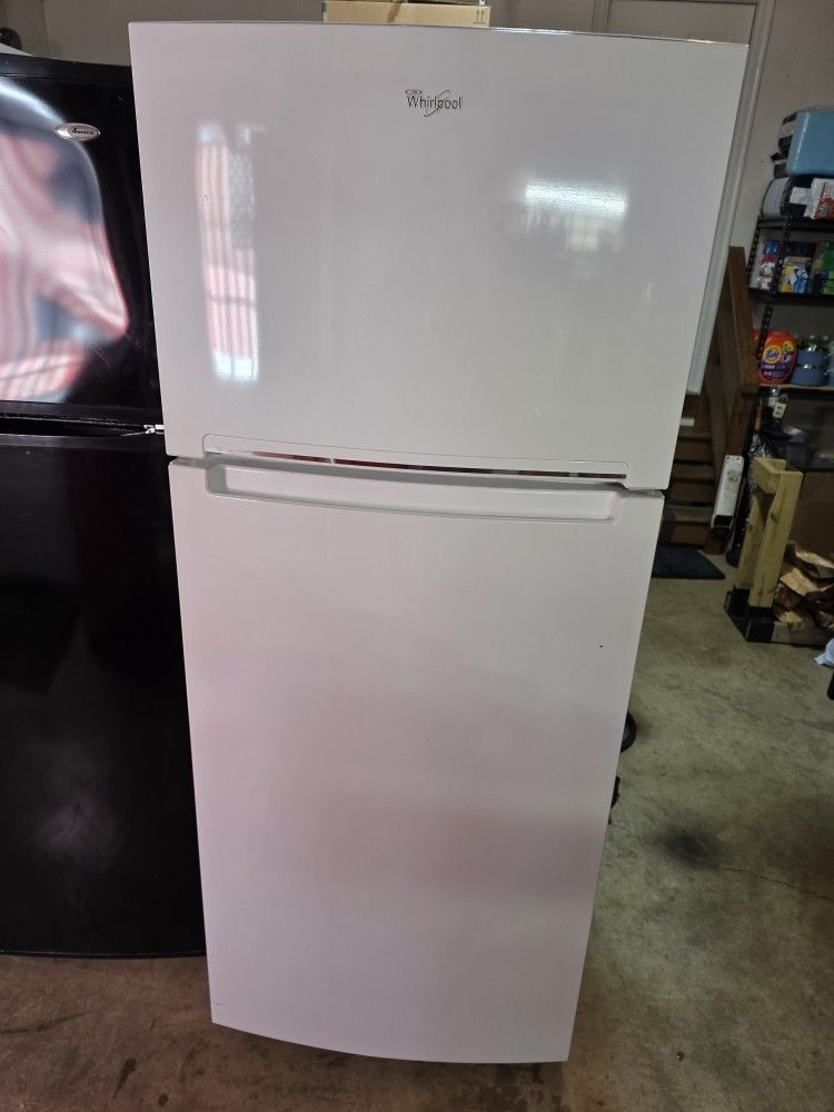 In great working condition Whirlpool 18.0 cuft top freezer refrigerator, Refrigerator Compatible With The EZ Connect Icemaker Kit. Ready for use. Great for garage, office, apartment and or he/she cave. Dimensions 28"W x 28 1/2"D x 67 1/2"H