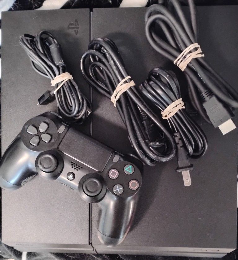Comes with a controller and the Ps4 with the cords. It's in great condition and wouldn't sell it if I didn't need rent money..