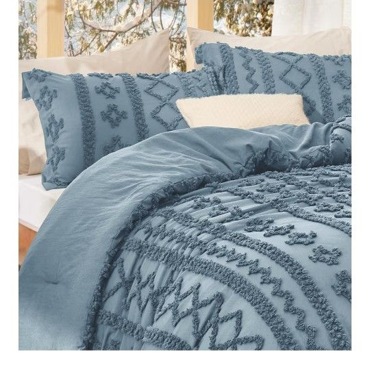 Grayish Blue Boho Bed Set, GentleSoft™ 2 Pieces Farmhouse Shabby Chic Embroidery Bedding, Soft Jacquard Twin Comforter for All Seasons New in opened box H1072