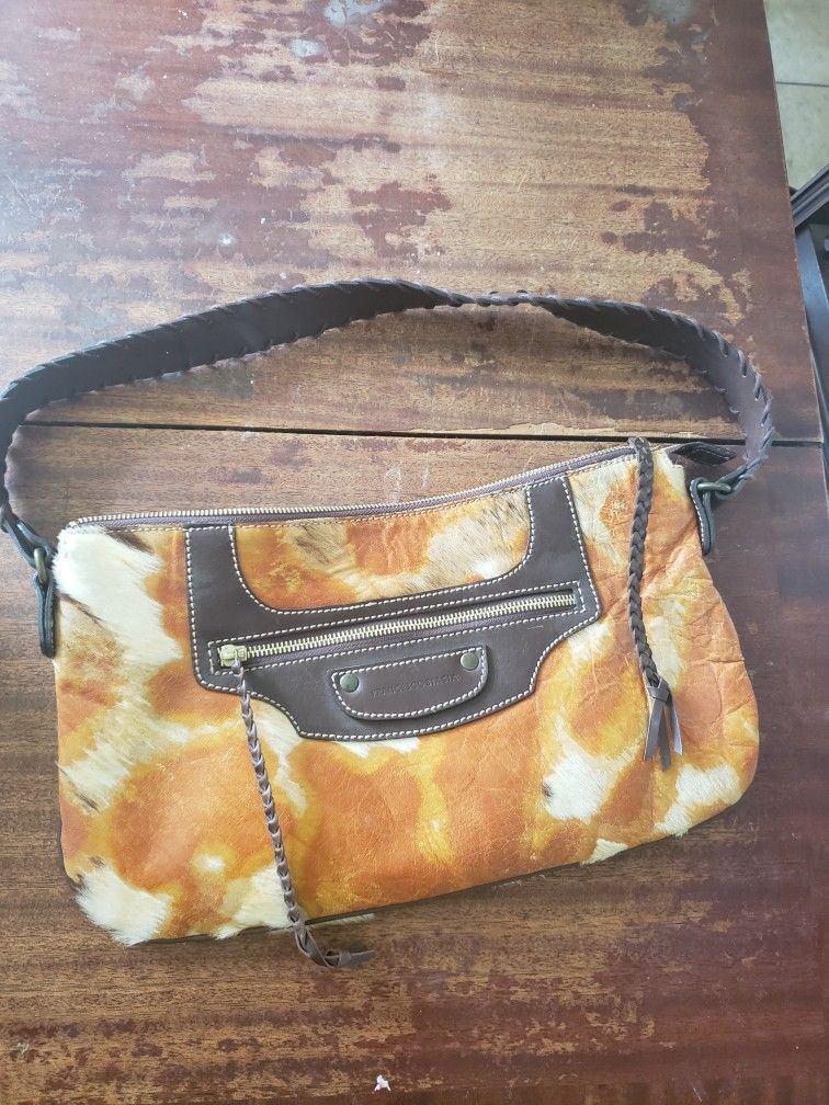 Has tufts if cow hair on bag Leather belt straps Gently used - All zippers work If it was new valued at $250 asking $100