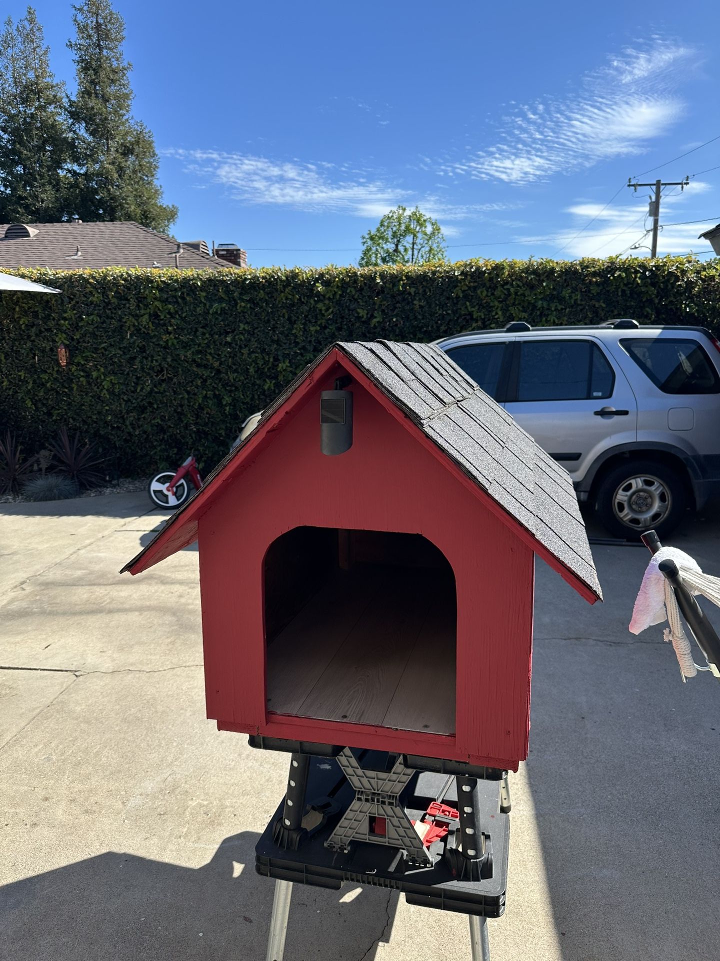 Free wooden dog house. Recently painted with shingled roof and vinyl floor. Was used by a 70lbs dog. The house WILL NOT fit in a regular car. You need a truck or van to transport. The doghouse is sitting on a workbench after I had just painted it. (Workbench not included) 25” wide x 40” long x 31” heigh I am located 3min from the IKEA in Covina. Please look up the intersection of Rowland Ave and Barranca for distance.
