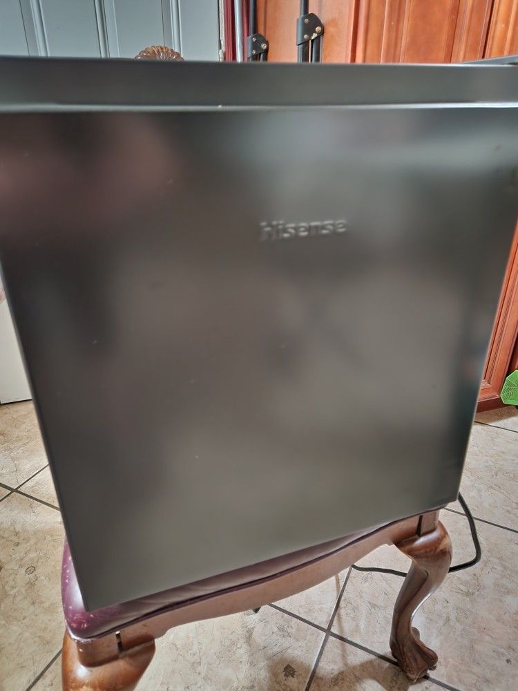 Mini refrigerador de 19 de altura por 17.5 de ancho y de la puerta para atrás mide 18.5 pulgadas esta seminuevo trabando muy bien no está maltratado sirve muy bien para estudiantes