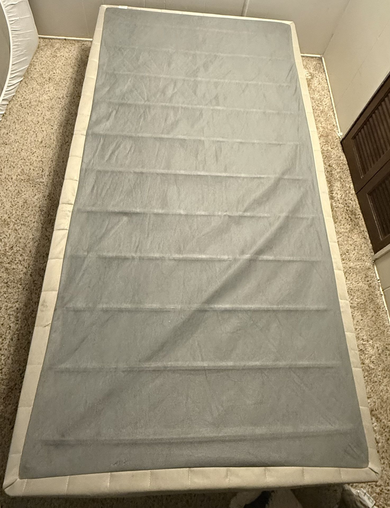 Twin-size metal bed frame in good condition. Solid, stable construction with wooden legs for support. Great for a guest room, kid’s room, or simple bedroom setup. Fits a standard twin mattress.