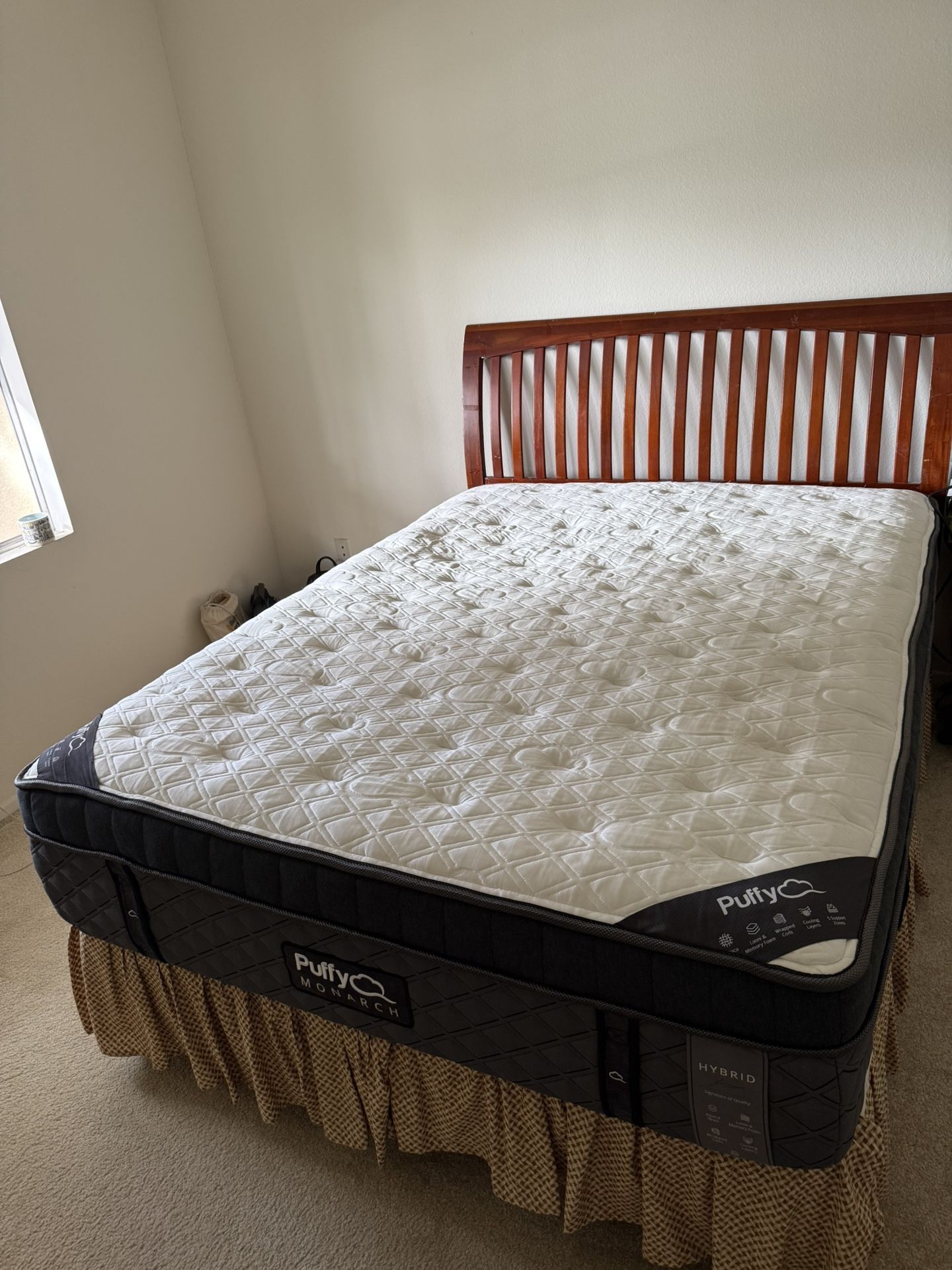 Puffy Monarch Queen Mattress Like New condition—Used for 3 weeks Cleaned and Sanitized Delivery Available