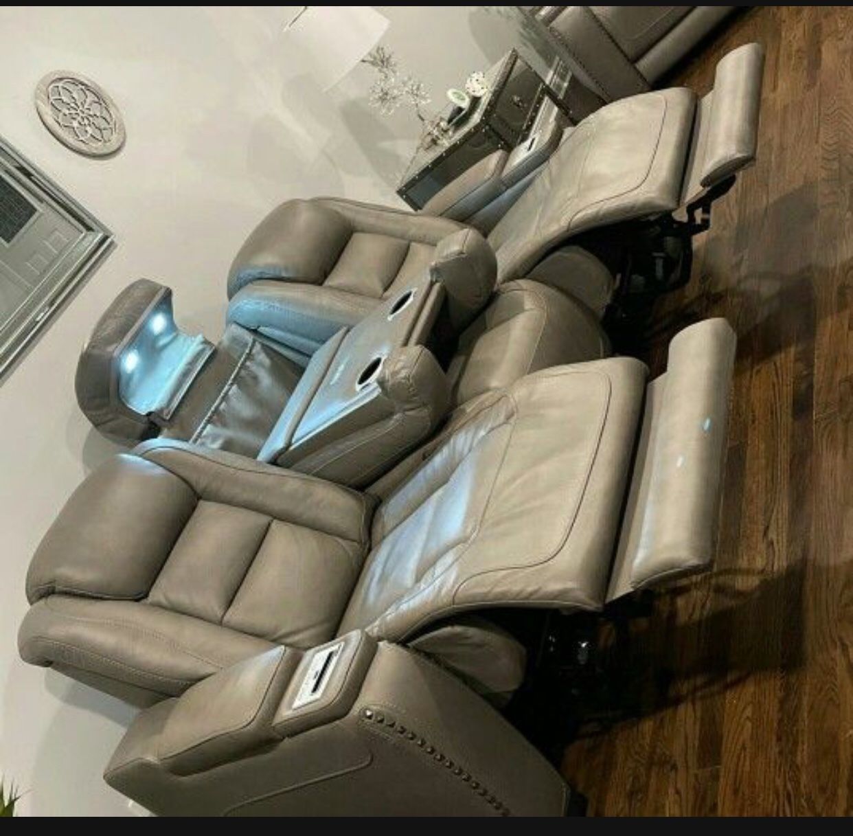 Power Reclining Genuine Real Leather Gray Sofa With Adjustable Headrest 💥 Brand New☄️ Color Options👍 $39 Down Payment✅