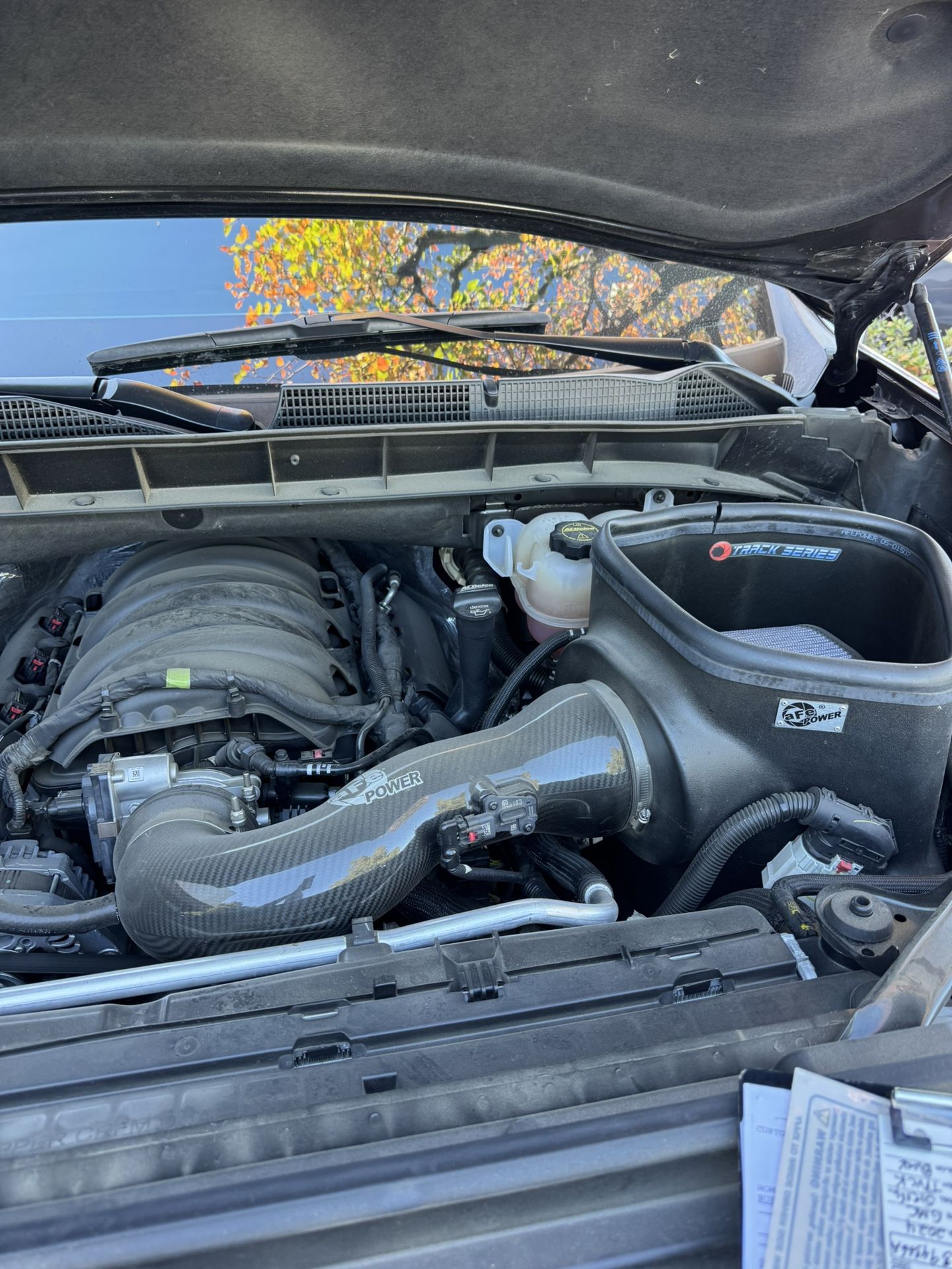 Used but like new condition. Dusty but zero damage to carbon fiber or box. Performance Boost. Enjoy a more powerful and confident driving experience by equipping your Silverado with this AFE Track Series Cold Air Intake with Pro 5R Filter and Carbon Fiber Intake Tube. This intake system outflows the factory intake by 52% and facilitates the cooler, oxygen-rich air to fill your combustion chamber for an optimized air-fuel mixture. The resulting enhanced airflow delivers a 20-horsepower increase and 26 pound-feet of torque gains. Custom Tuning Not Required. You don’t need to worry about aftermarket tunes or adjustments to your truck’s ECU as this Track Series Cold Air Intake works with the factory tune. The stock computer tune will do the job and let the intake system operate for your engine’s optimum performance. Pro 5R Oiled Filter. AFE designed this Track Series Intake with a 9-inch, pre-oiled air filter that features 5 layers of progressively finer, washable cotton media. This construction can endure repeated cleaning cycles for any miles of use. The massive, 360-degree design enables optimum airflow and high filtration capacity. These qualities significantly increase the available air volume for maximum airflow that generates additional power. Premium Construction. This Track Series Cold Air intake system features black cross-linked polyethylene for the CAD-designed housing. This 1-piece air box features an open-element design for easier filter inspection without disassembly. The intake tube is made of premium, lightweight twill weave carbon fiber for more efficient airflow. Moreover, it comes with stainless steel clamps with inner protective liners and automotive-grade silicone couplers. Bolt-On Upgrade. AFE engineered this Track Series Cold Air Intake for a bolt-on installation. It directly replaces your stock intake system and reuses the factory mounting points. The installation process completes using basic hand tools and requires light mechanical skills. AFE’s 3D engineering makes sure that this intake system integrates into your vehicle with a seamless OEM fit. AFE’s 2-Year Warranty. AFE backs this Track Series Cold Air Intake with a limited warranty for a period of 2 years from the date of purchase. This warranty covers factory defects in materials and workmanship. Some exclusions may apply; please check the terms and conditions for full details. Application. This AFE Track Series Cold Air Intake with Pro 5R Oiled Filter and Carbon Fiber Intake Tube is intended for use on all 2019 to 2026 6.2L Chevrolet Silverado 1500 models.