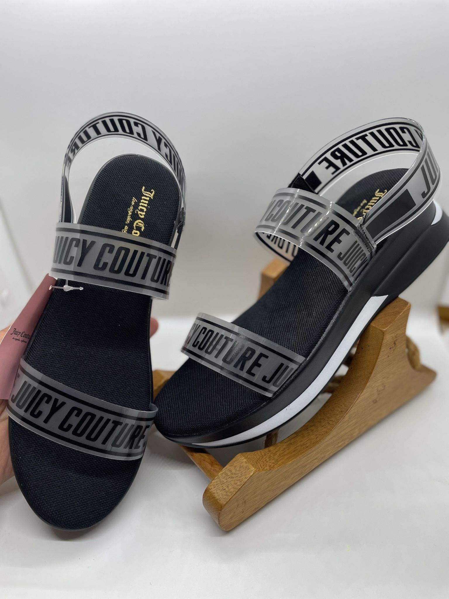 New with tags Authentic Juicy Couture Imany Platform Sandals Size 7 Ankle Straps Wedge Heel
