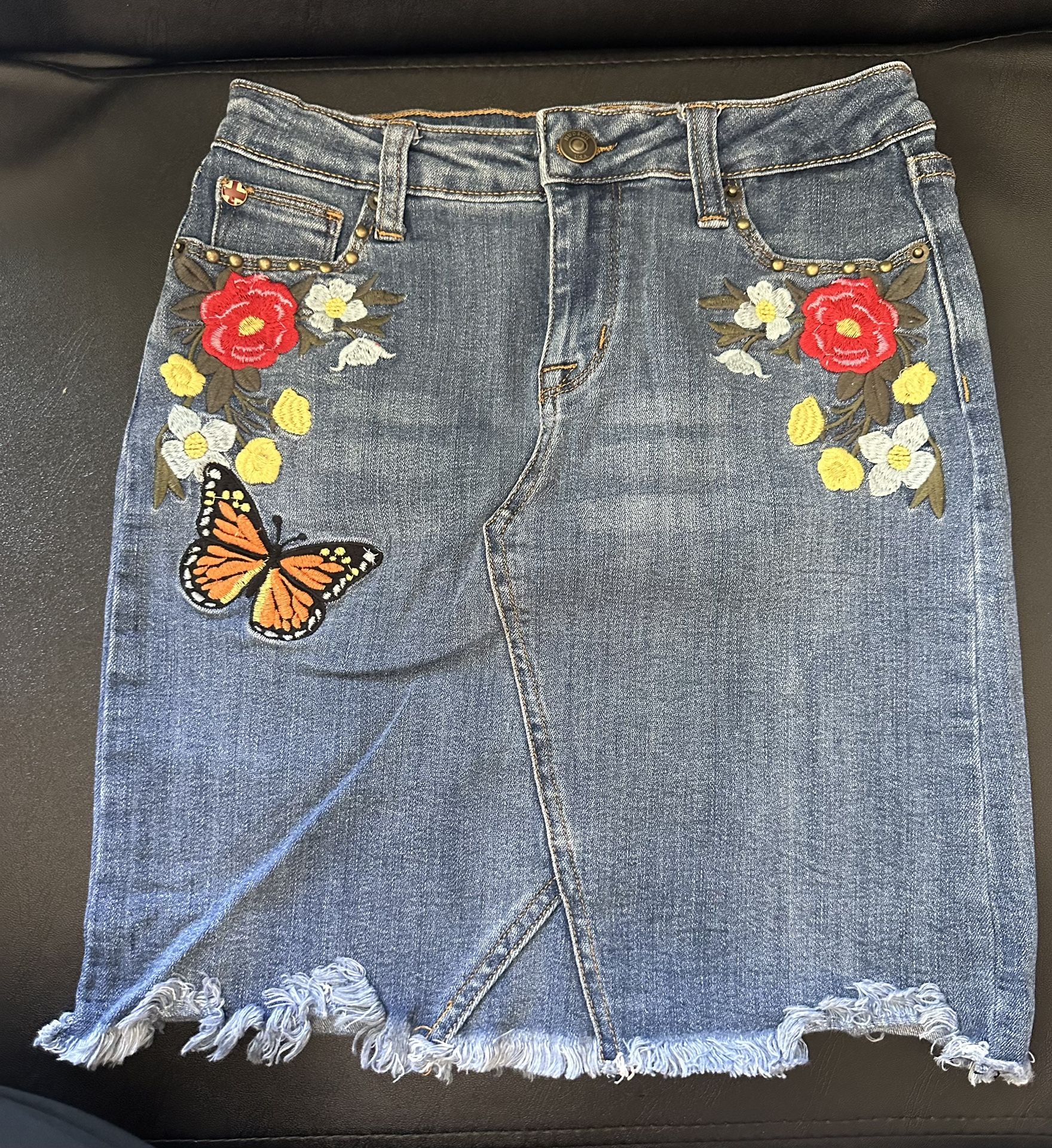 Hudson Girls Embroidered Denim Skirt Size 16 With Butter Butterflies