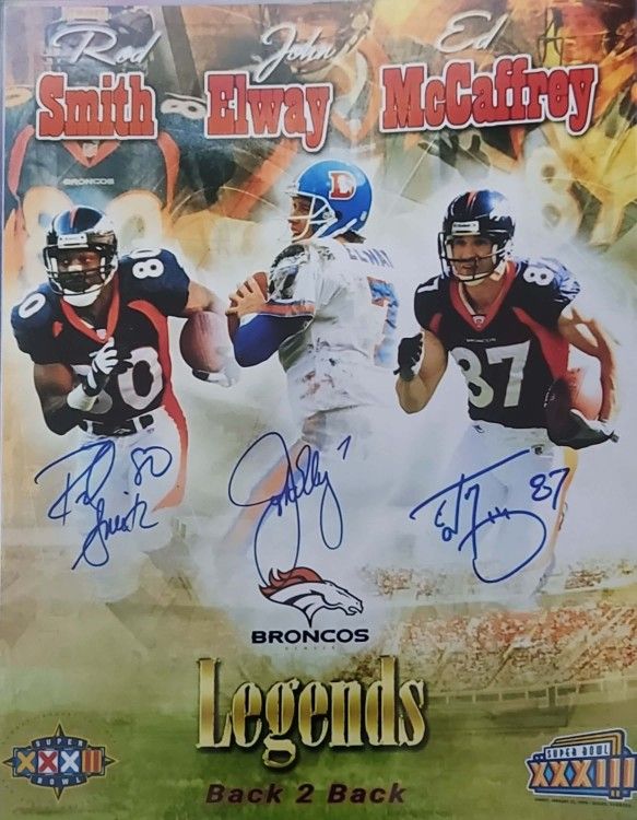 Denver Broncos Greats Smith, Elway, McCaffrey 8x10 Photo