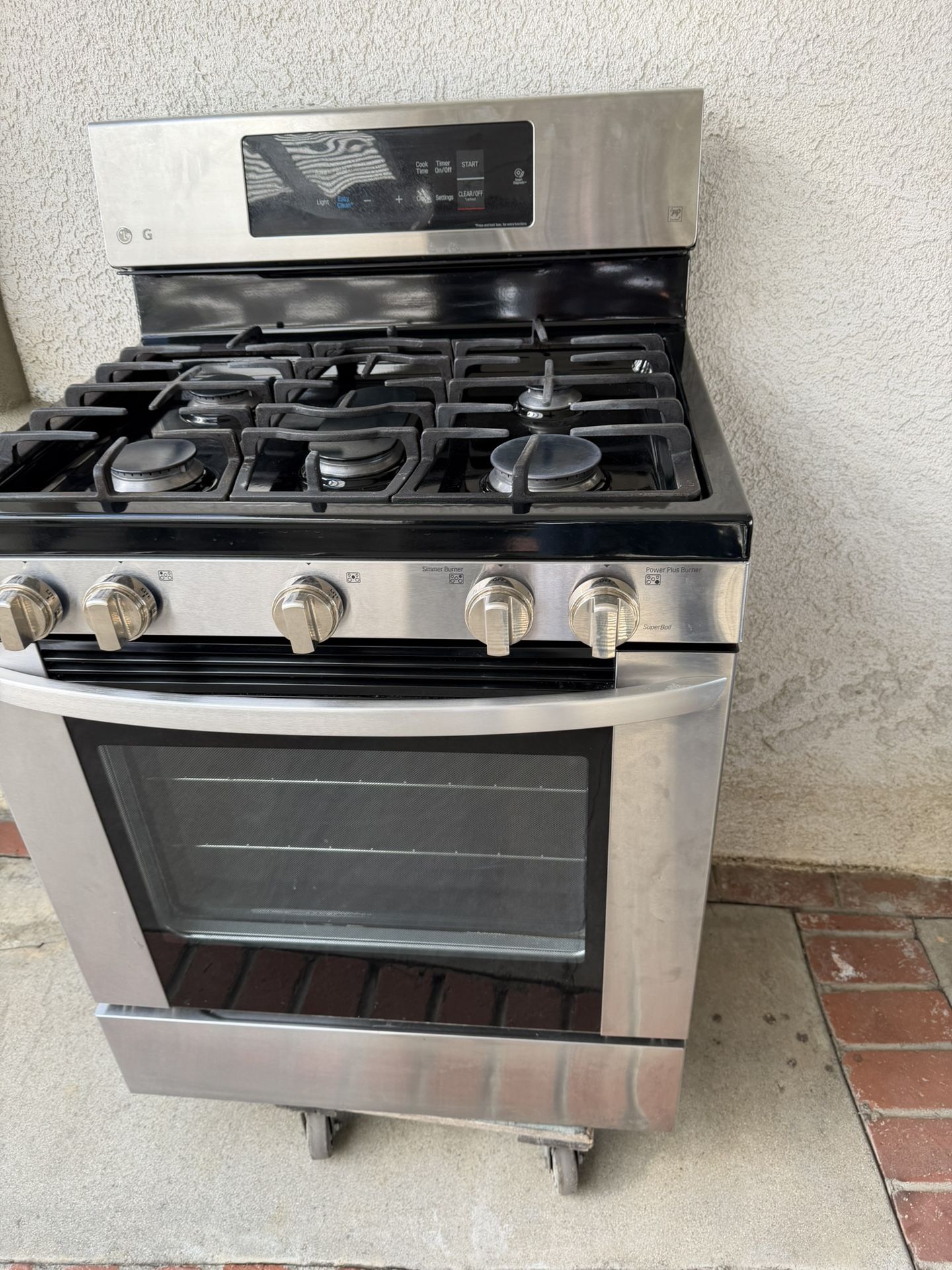 5 burner stove Brand LG used but well kept up About 4 yrs old stainless steel With black. Everything works And stove has been cleaned and ready to install and use.must see to realized the great deal Everything works on stove