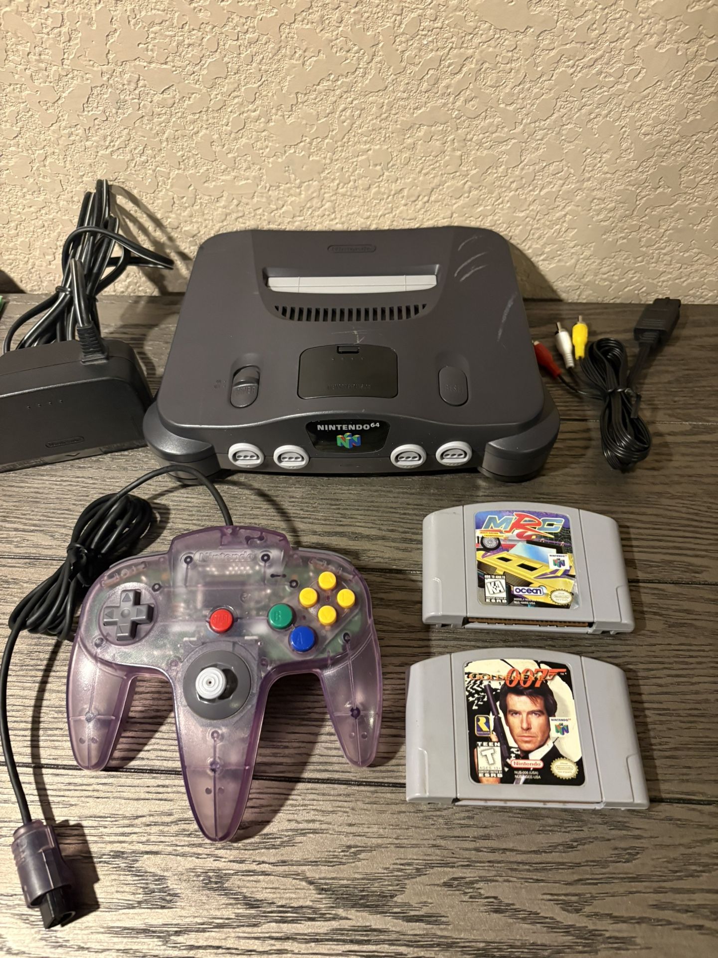 Nintendo 64 with one controller, power and video cables. Two games included Goldeneye 007 and a racing game. Tested and works. Pick up at 88th and Washington st.