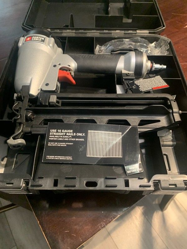 PORTER CABLE NAIL GUN. Used a few times. Like new in box..