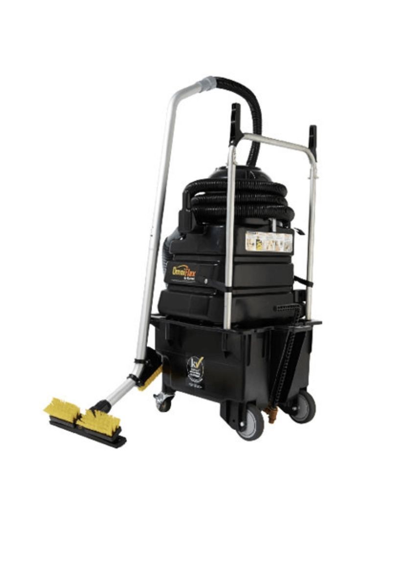 Brand new Omniflex vac system!! The OmniFlex Dispense-and-Vac (OFDV) is optimized to clean dirty floors in the food service environment. The OFDV includes a crush-proof hose, and an aluminum handle with dual-purpose brush and squeegee head.