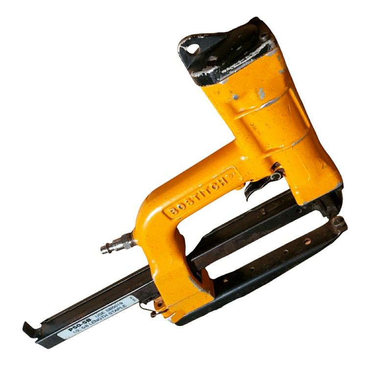 Bostitch P50-5B Pneumatic Stapler w/FREE Box of 6,000 Staples 1/2" Ships from / pickup from Leonard, MI 48367. Used, but in good working condition - total of 2 units avail. Trigger operated, steel and aluminum housing, square jaw, sturdy mounting lug. Comes with a new FREE box of 1/2" staples - 6,000 per box. - Brand: Bostitch - Model: P50-5B - Power Type: Pneumatic - Weight: 5 lbs (2.04 kg) - Width: 2.2" / 55 mm - Length: 14.6" / 370 mm - Height: 10.6" / 270 mm This is a used pre-owned item, and as such it will have typical imperfections you would expect from used items due to normal wear and tear, possibly including but not limited to nicks, scratches, surface rust, chips, scuffs, spots, pitting, small gashes, and dents. Please check all pictures closely to be sure you know what you're getting as the pictures are part of the description - meaning what you see is what you get. Sold as pre-owned and in as-is condition. Please feel free to message me with any questions or concerns!