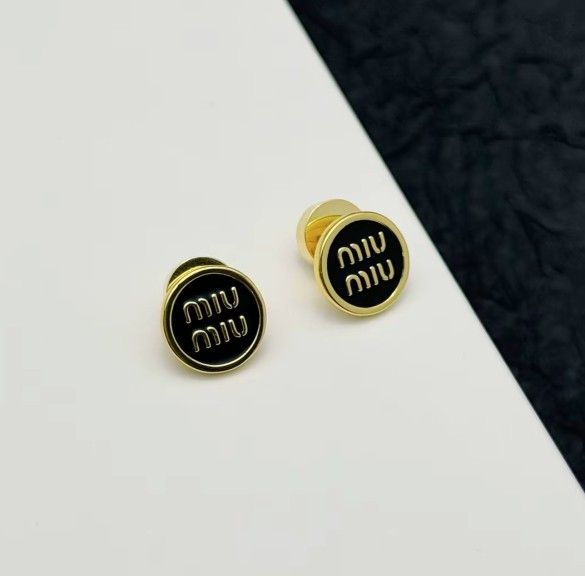 Letter logo decoration romantic metal earrings for women in black Color: Black ; Size: F
