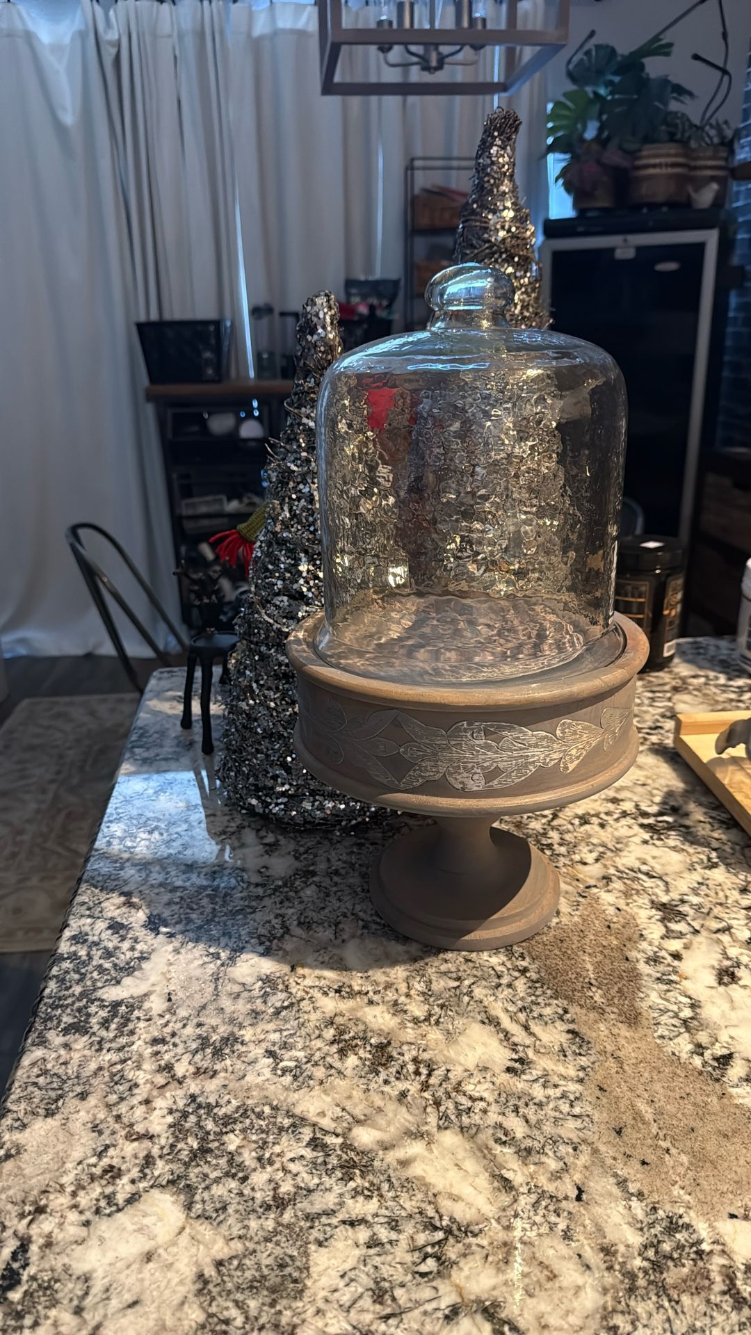 Put anything in this. diameter is probably 8 -10”wide. Metal decor around it. Only text for pick up.