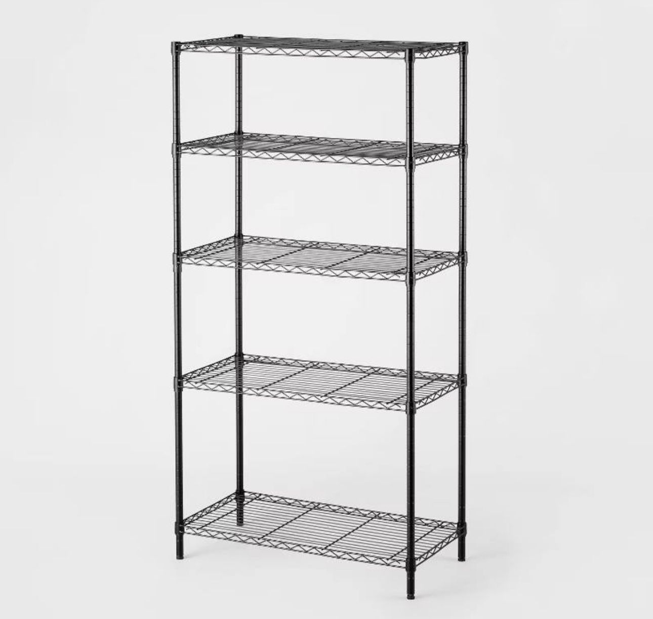 Heavy-duty 5-tier steel shelving unit in black. Great for garage storage, pantry organization, closets, laundry rooms, or workshop shelving. Originally used for candle storage, so there’s minor wax residue on some areas. Already assembled and ready for pickup. I have 3 total units available. • 5-Tier steel shelving rack • Black wire steel construction • Heavy-duty shelves • Max weight capacity: 350 lbs per shelf Height: 72.63 in | Width: 35.63 in | Depth: 18 in