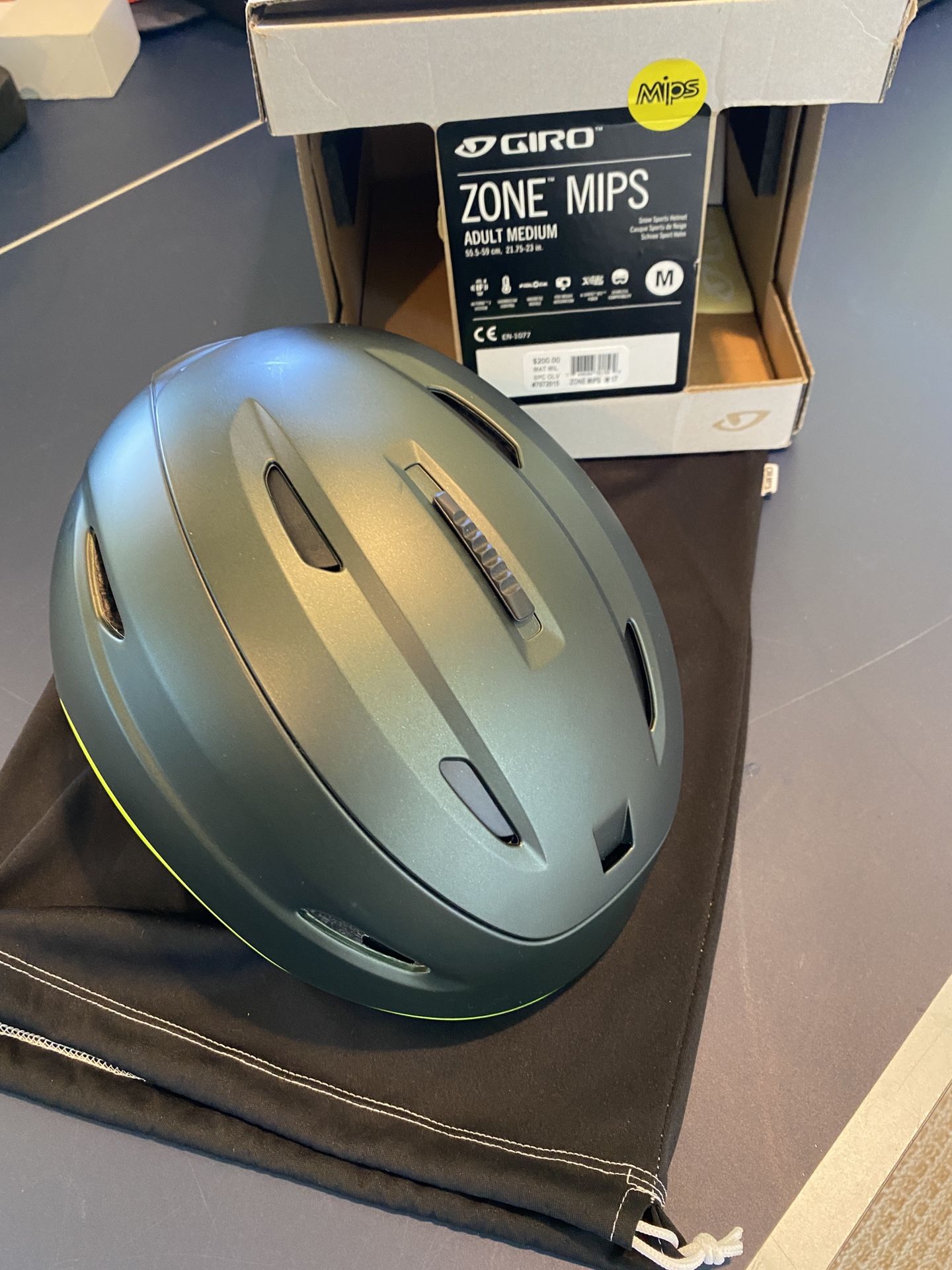 Men’s medium giro mips helmet. Like new. Didn’t fit. Full disclosure: I skipped a piece in the back to cup the back of the head better. It works well :) my heads just too big. Used once.