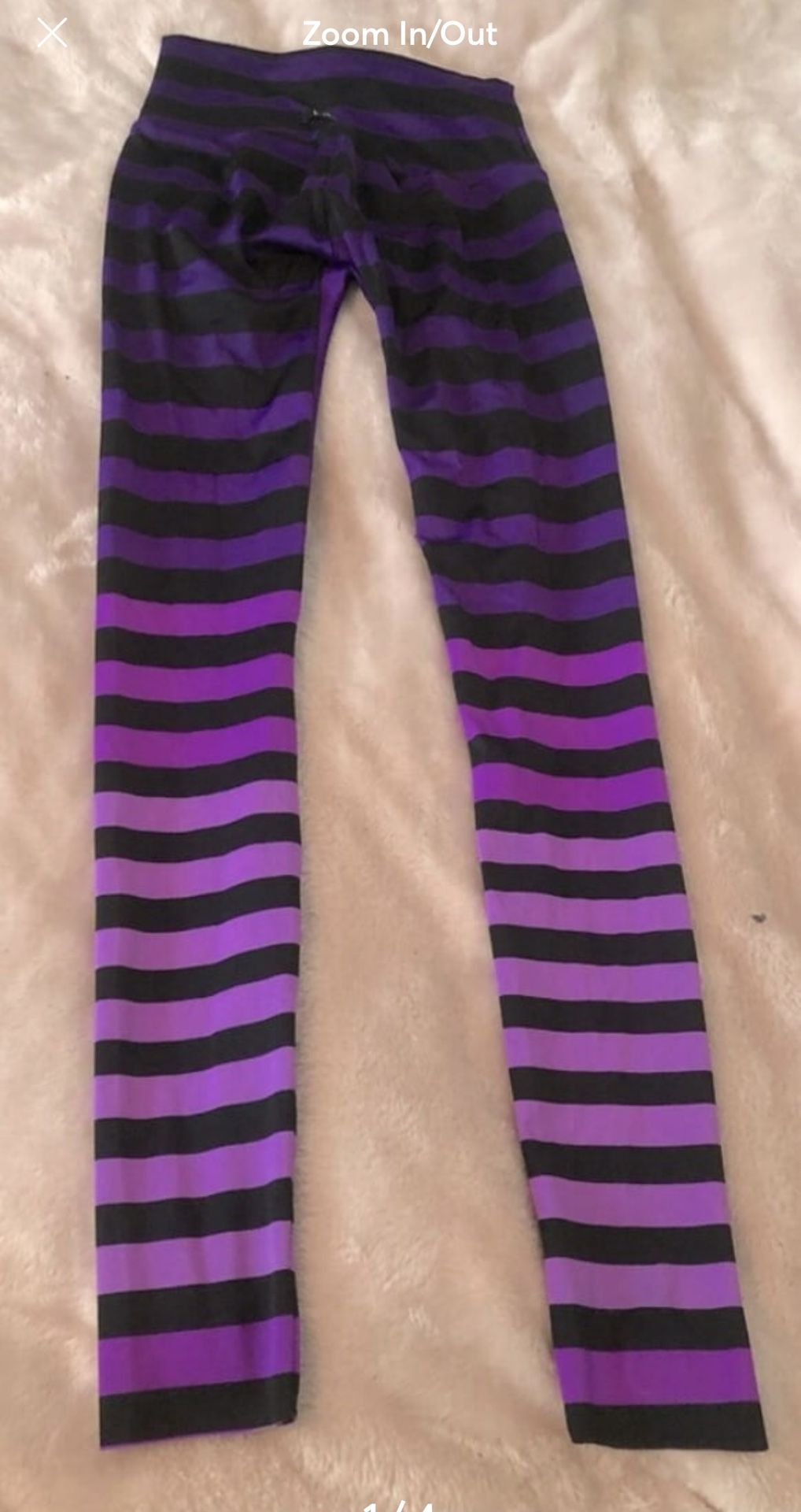 K-Deer Nylon/Spandex leggings. High quality yoga pants. Purple Ellen Stripe print, size SM.