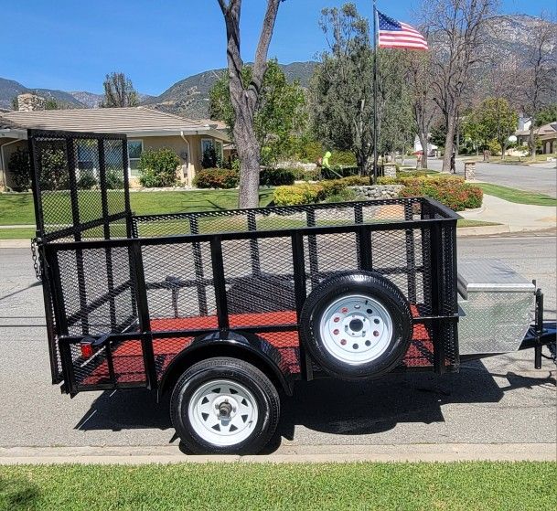 8x5 heavy-duty trailer, 36-in height walls with a toolbox, very solid floor, nice long gate for easy loading, new spare, new lights, new jack and wheel, permanent plate and pink slip in hand 1975