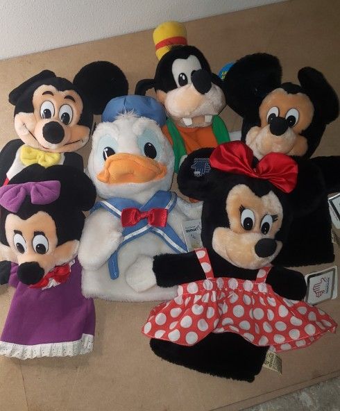 Still New w/ Tags! Lot of 6 Vintage Disney Hand Puppets From "Magic Kingdom on Ice" "World on Ice Happy 50th Birthday Donald Duck" & "Applause".. Create your Own Fun filled Show with Some of Walt Disney's Most Loved Characters, That Includes.. *Mickey mouse (in Red) By Walt Disney Magic Kingdom on Ice.. *Mickey Mouse (All Black) By Applause *Goofy by Magic Kingdom on Ice *Donald Duck by Applause *Minnie Mouse (Red polka dot dress) By Applause *Minnie Mouse (Purple gown) By Magic Kingdom on Ice.. All in Excellent Condition!! Dont forget to check out my other Disney posts, will also do Bundle deals!! No Flakes!
