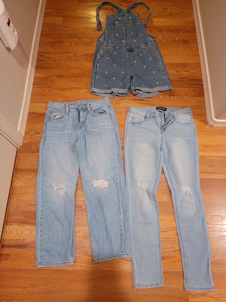 Barely worn in excellent condition! Set of 3 sell as a set $12 cash Old navy slouchy straight size 12y Gap denim overall shorts size 12y Blue spruce size 12y