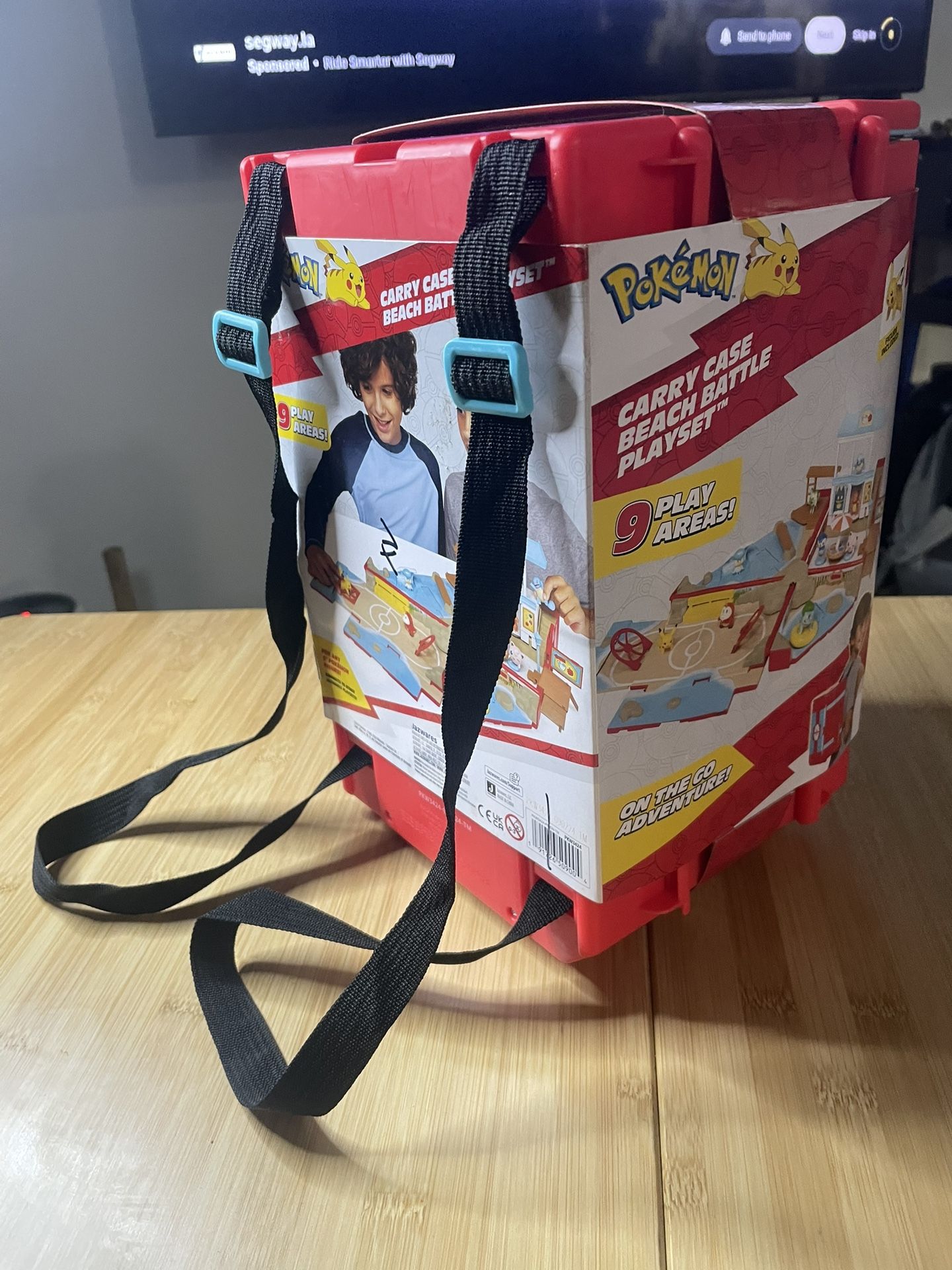 Battle anywhere with this Pokémon Carry Case Beach Battle Playset! Includes figures, accessories, and a portable case for easy setup and cleanup. Perfect for Pokémon fans who want imaginative battles at home or on the go. Brand new in box and ready for Christmas