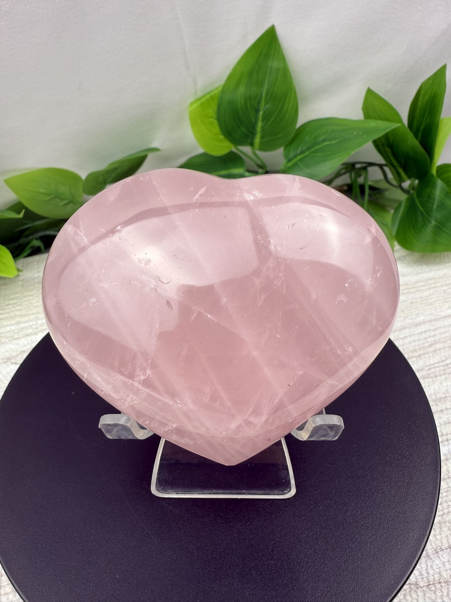 Large rose quartz crystal heart carving with dark color and thick sides. Comes with clear stand for display but has some chipped edges on the bottom point and the side, still very cool big heart good for decoration, gift or display. Approx: 2.92” tall 3.49” wide 1.66” thick and 371g/13.08oz Payment methods: Cash, Venmo, PayPal Local meet up 98092, no holds. message me for any requests Check out my other listings if you love crystals 💕 CRYSTALS CAN APPEAR LARGER IN PHOTOS THEN IN REAL LIFE. PLEASE REFER TO THE DIMENSIONS LISTED‼️
