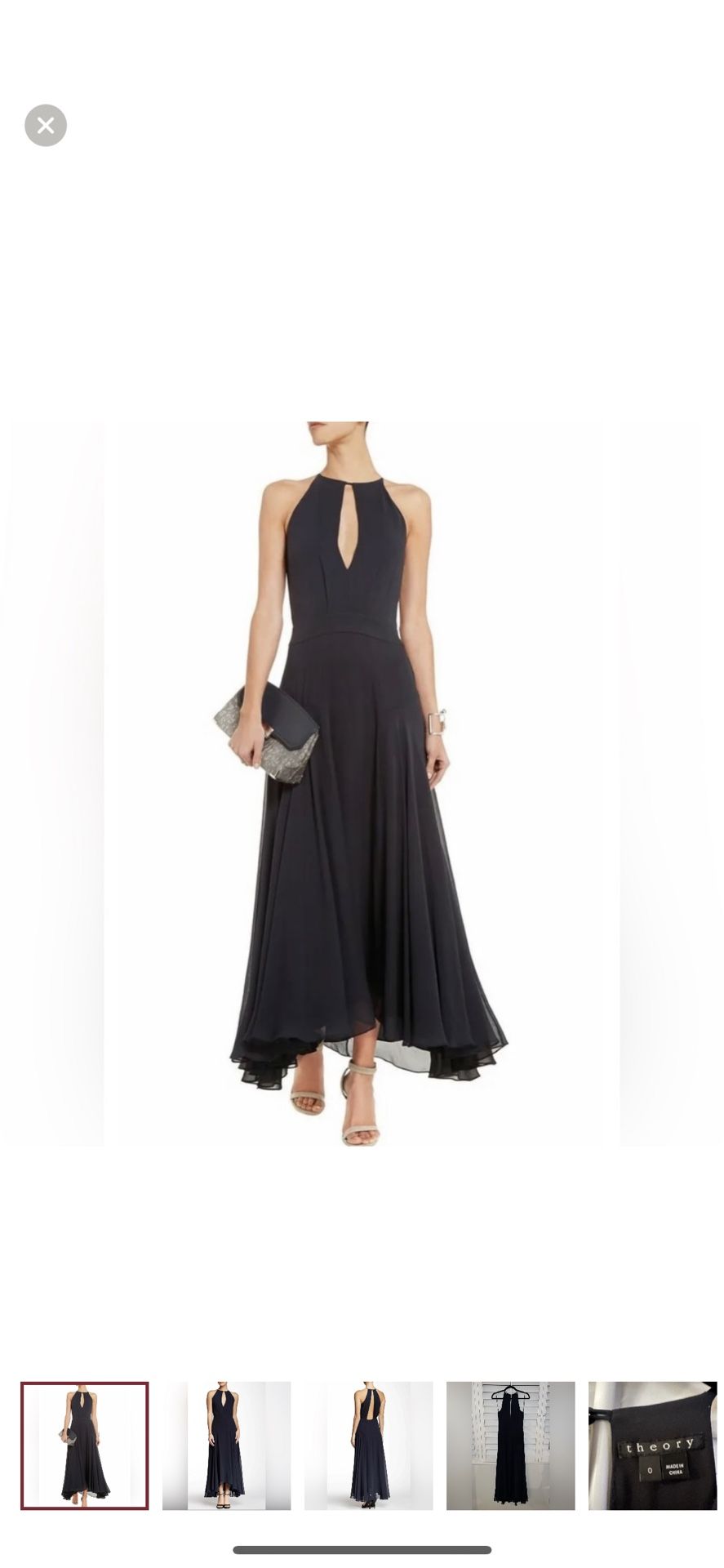 Navy. 100% silk with polyester lining. Size 0. Halter neck with Keyhole front. Lightly gathered and draped. Approx. 53" shortest length, 60" longest length Originally $700. Great condition. Beautiful!