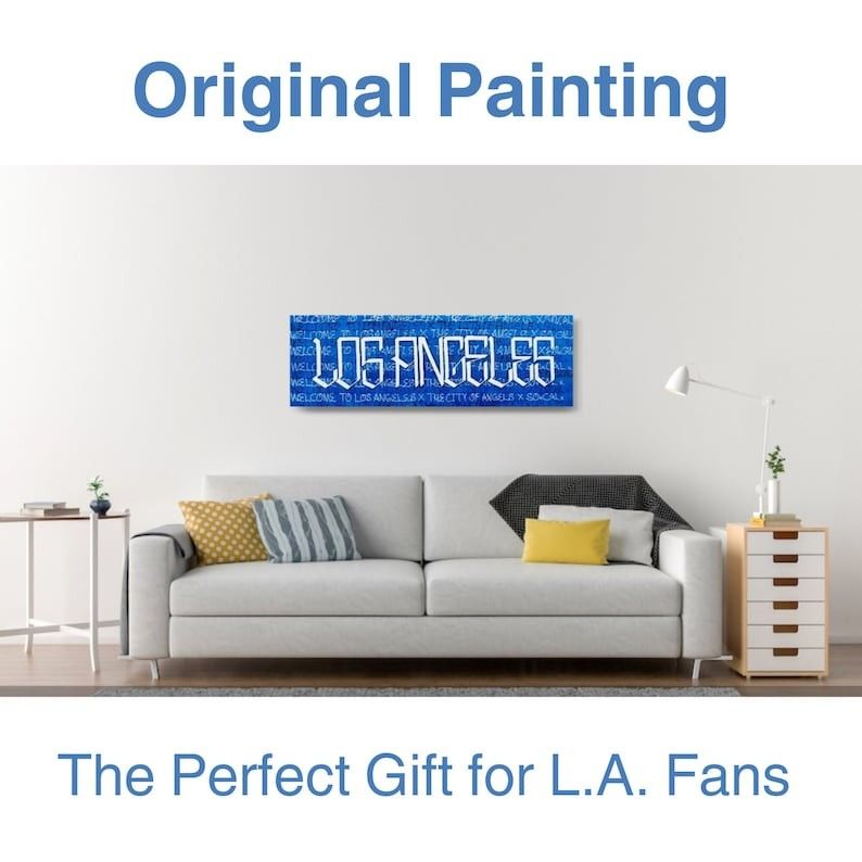 Calling all Los Angeles fans, available is this one of one painting. Here's what makes this painting special: - Sized 12 x 36 x .75 inches, and ready to hang. - Unique and vibrant acrylic paint on canvas artwork. - L.A. vibes: This painting captures the essence of the City of Angels with the "Welcome to Los Angeles, the city of angels". - Perfect for any Los Angeles Dodgers fan or L.A. lover, whether in your home, office, garage and more. This painting makes a unique and meaningful gift, or a stunning addition to your own home decor, just in time for Valentine's Day, or any other birthday, anniversary or event.