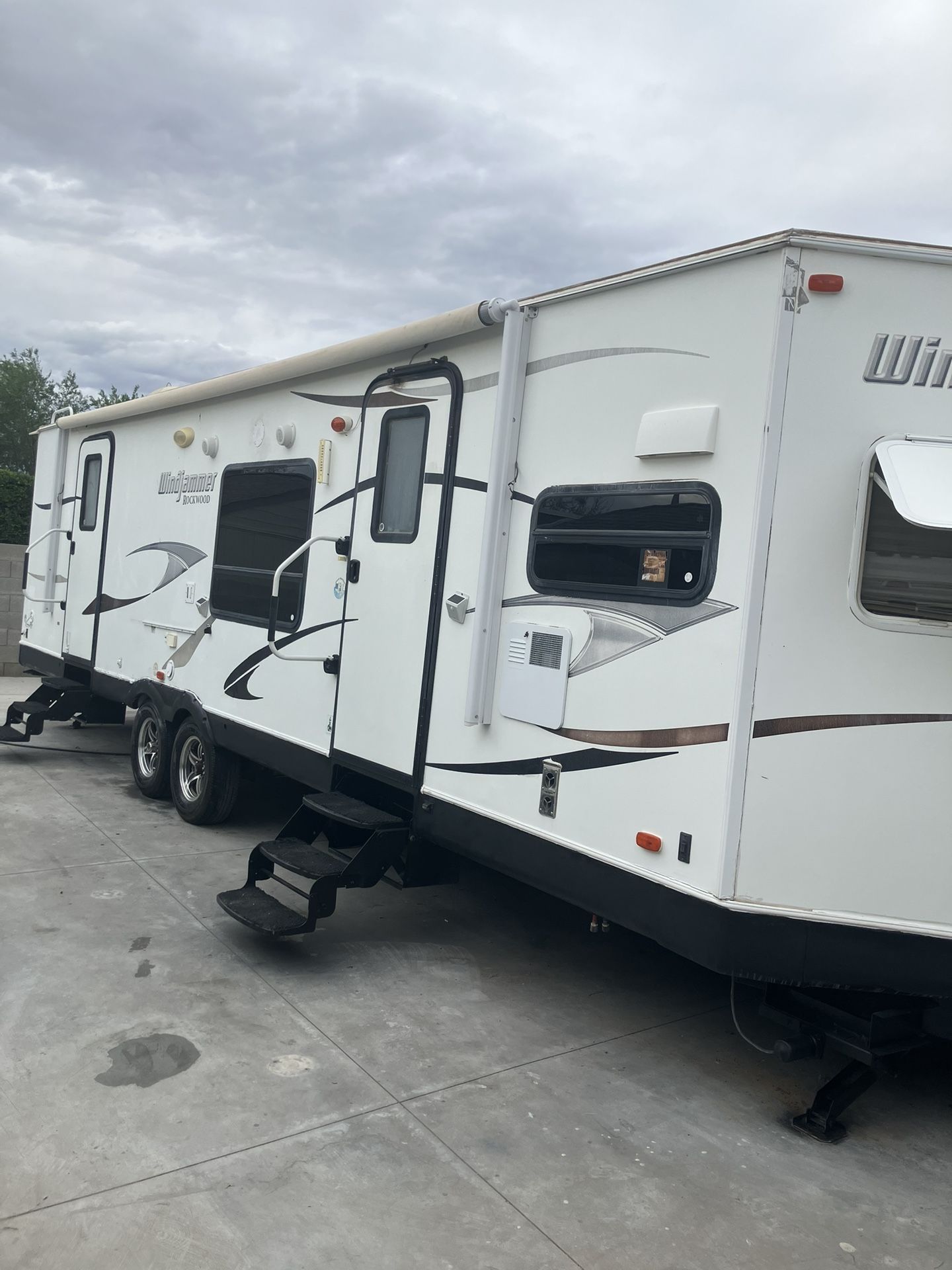 2013 31FT double slide out double door electric jacks electric awning two ACs rear queen walk around bed, fully self-contained very nice and clean condition. Everything working clean Arizona title. made by Rockwood.