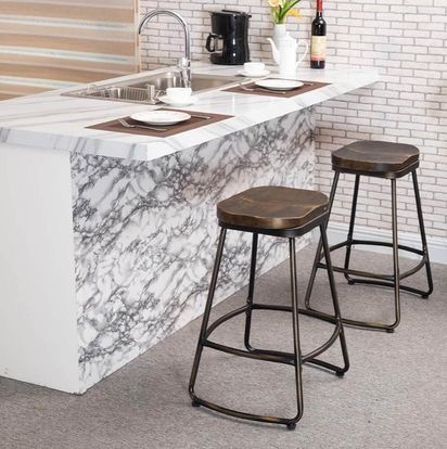 166 Awonde 24" Swivel Bar Stools Set of 2 Industrial Metal Counter Height Barstools with Wood Top