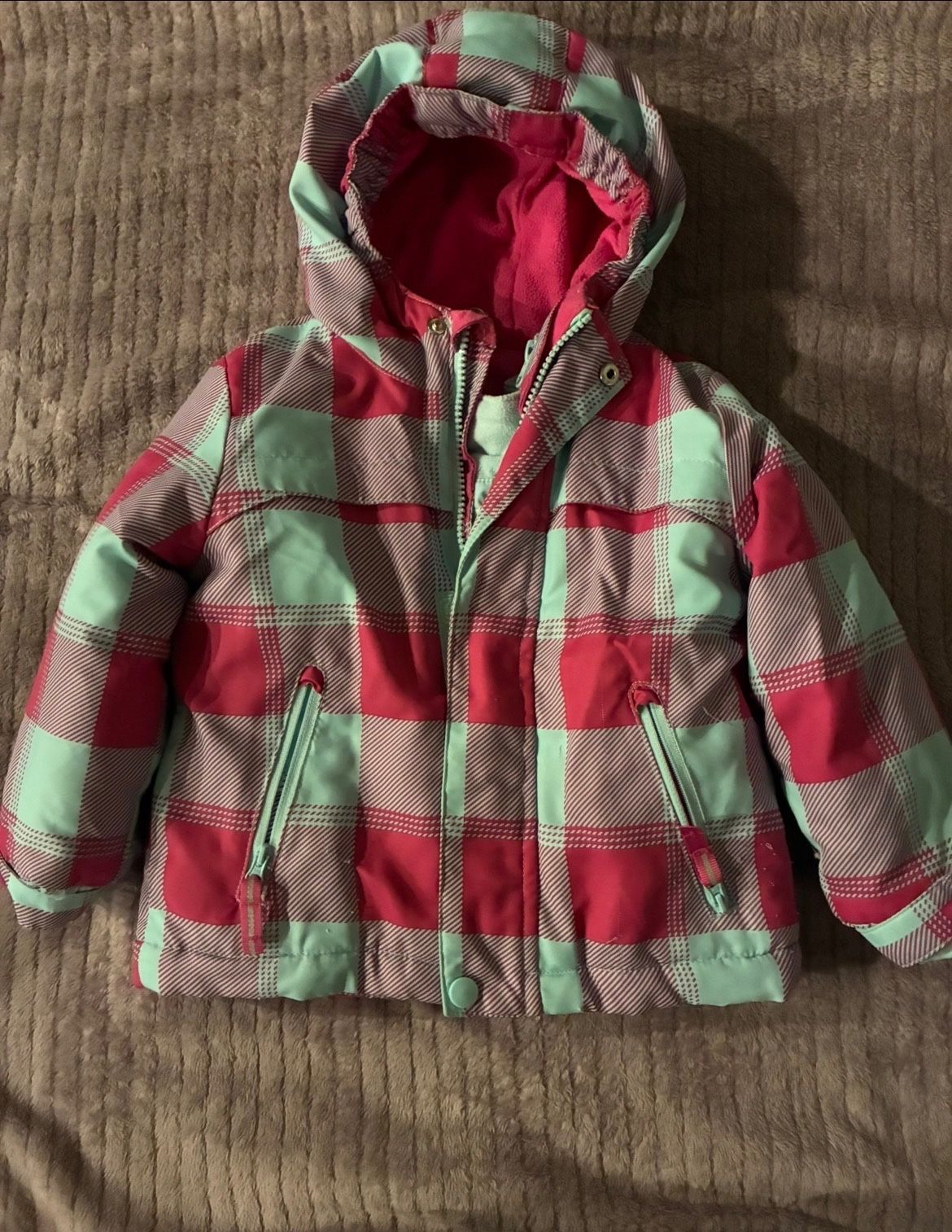 Cat & Jack Pink and Green Plaid Puffer Jacket Size 2T