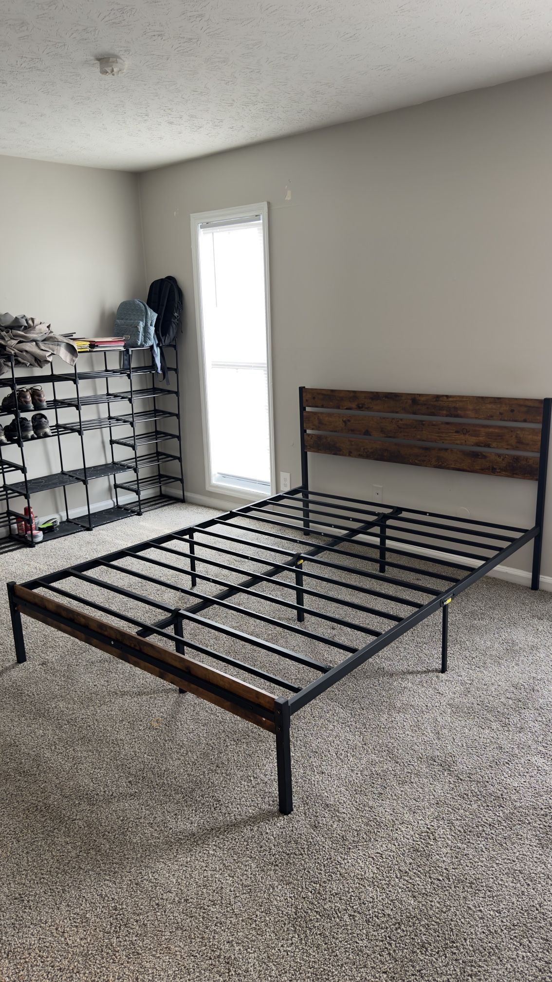 π¦ Moving Out Sale Selling a sturdy and stylish queen-size bed frame with a rustic finish β no box spring needed! β’ Size: Queen β’ Dimensions: 82.4β L x 60.6β W x 39.3β H β’ Color: Rustic Brown β’ Material: Engineered Wood & Metal β’ Style: Country Rustic β’ Finish Type: Stained β’ Special Features: β’ All-metal support system β squeak resistant β’ No box spring required β’ 12.2 inches of under-bed storage space β’ Easy assembly β’ Condition: 5 months old β in great condition π Pickup from Memorial Dr, Stone Mountain π° Payment: Cash only β no Zelle or Cash App NB: Pick up only β no delivery.