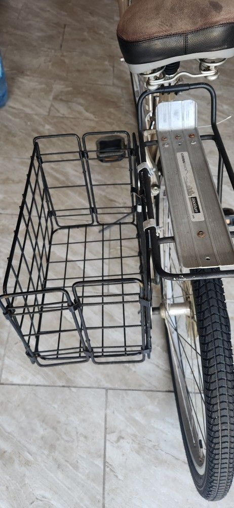 Nice folding basket for back of bicycle. Includes all hardware. Negotiable.