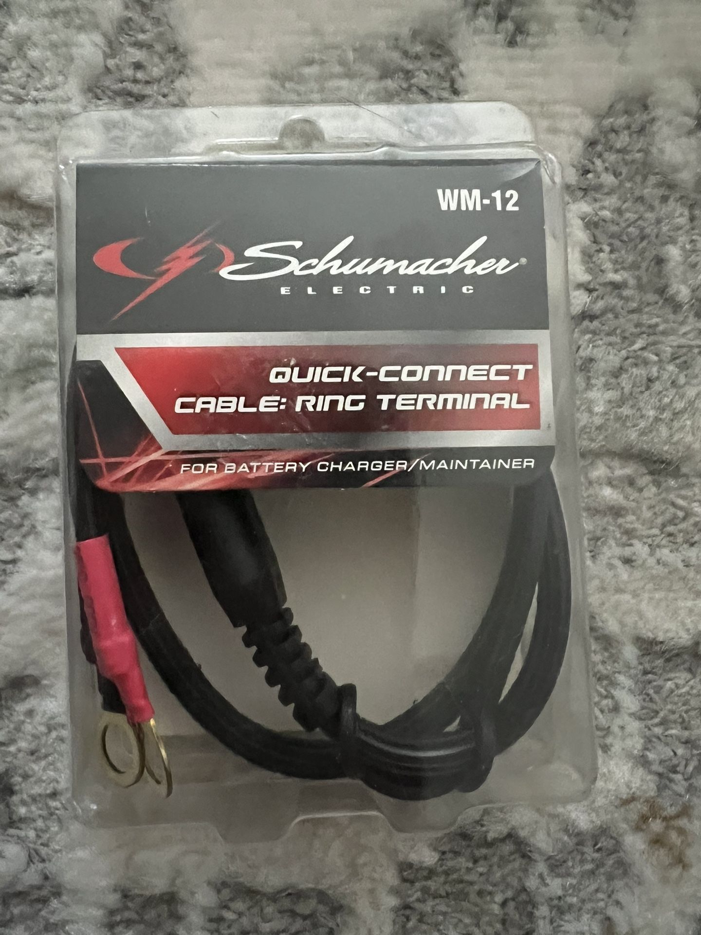 OEM Schumacher Electric WM-12 Quick-Connect Cable: Ring Terminal Please refer to the pictures as to what you will be getting with this lot. It is from an estate sale. AS IS. Please check my other listings. Thanks for looking.