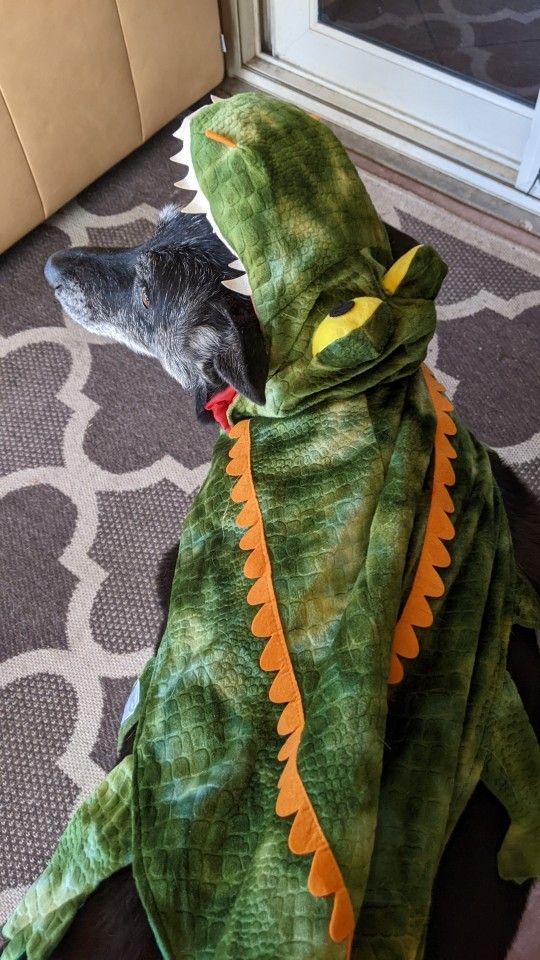 Our dogs are getting older now and won't tolerate the Halloween costumes that we've had so much fun with over the years. We have an alligator costume for a large dog a giraffe costume for a medium sized dog lion costume for a small dog