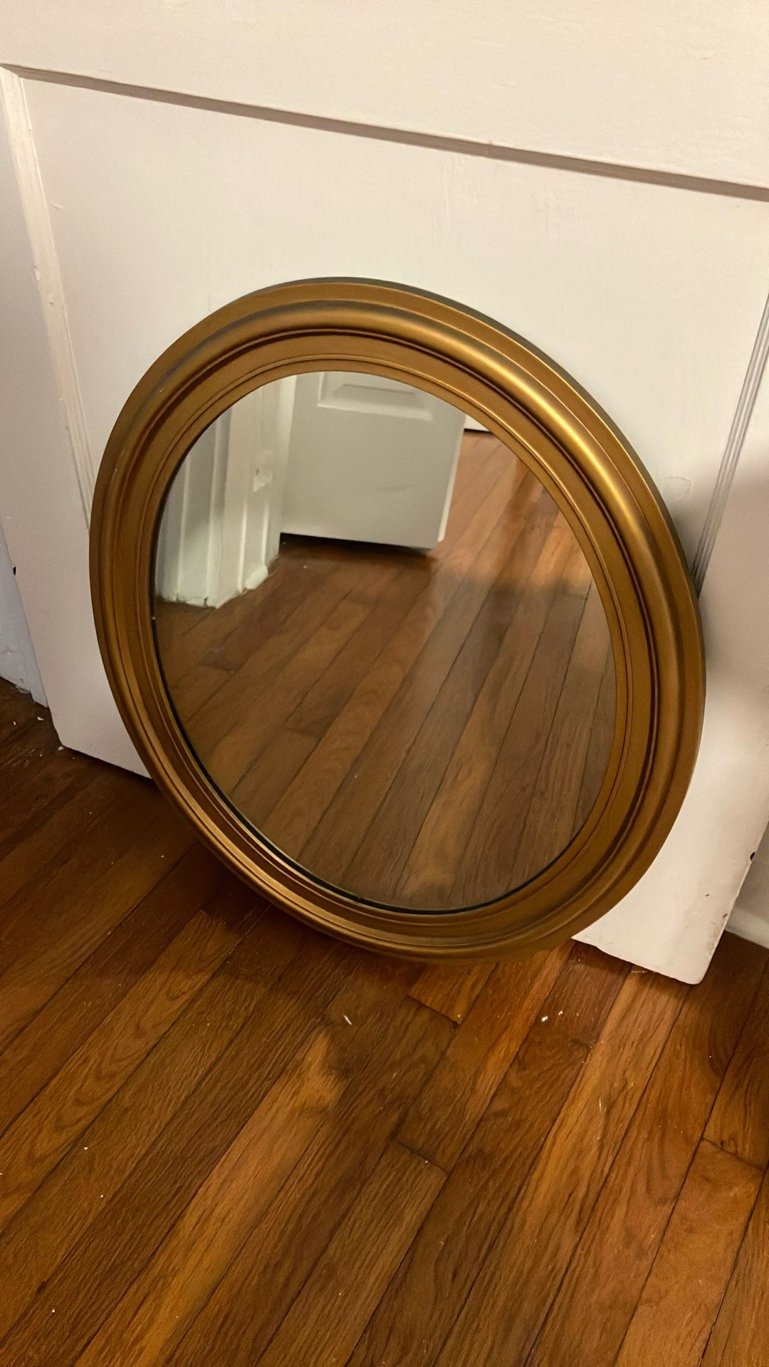 Nice Vintage Framed Oval Gold Mirror Size: 21” x 25”