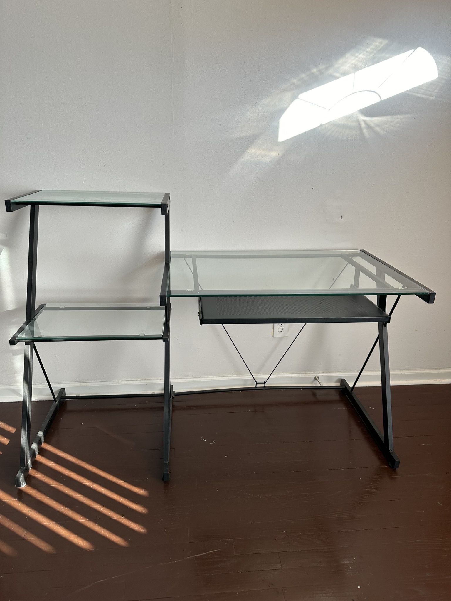Glass Computer Desk With Sliding Keyboard