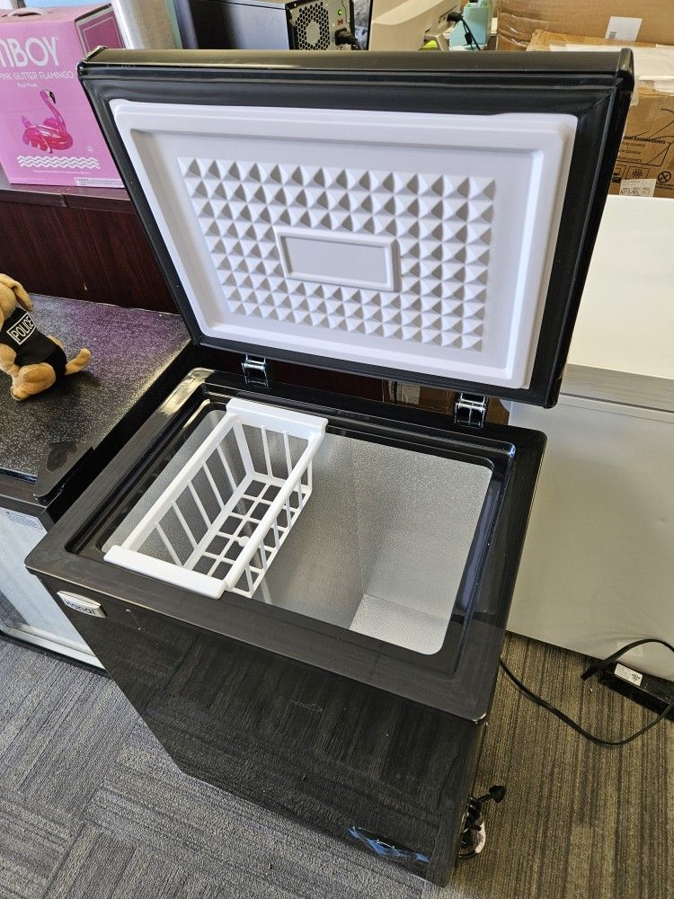 3.5 Cubic Chest Freezer, Compact DeepFreezer with Top Open Door andRemovable Storage Basket, 7 GearsTemperature Control, Energy Saving, forOffice Dorm or Apartment (Black)