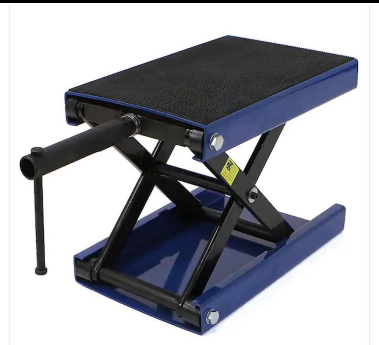 Item is new in open box Cash only Pick up only 1100 lbs. W Deck Scissor Lift Jack Motorcycle Center Hoist Stand for Bike ATV in Blue Dimensions: H 5 in, W 11 in, D 11 in