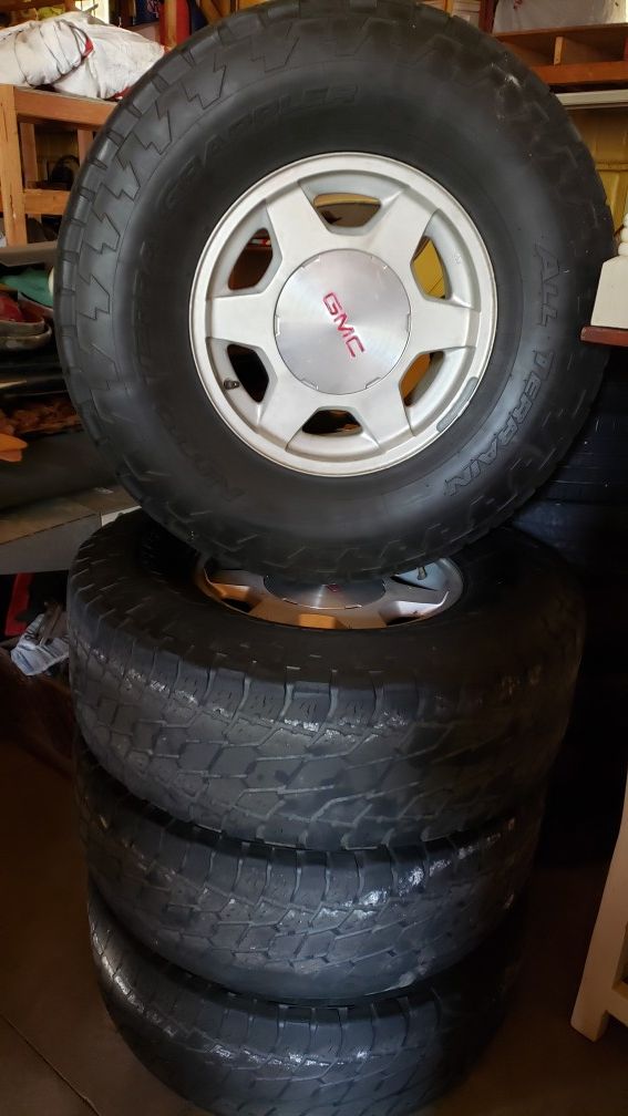 (4) 6 lug 16" 03 GMC alloys with caps. Tires No Good but hold air