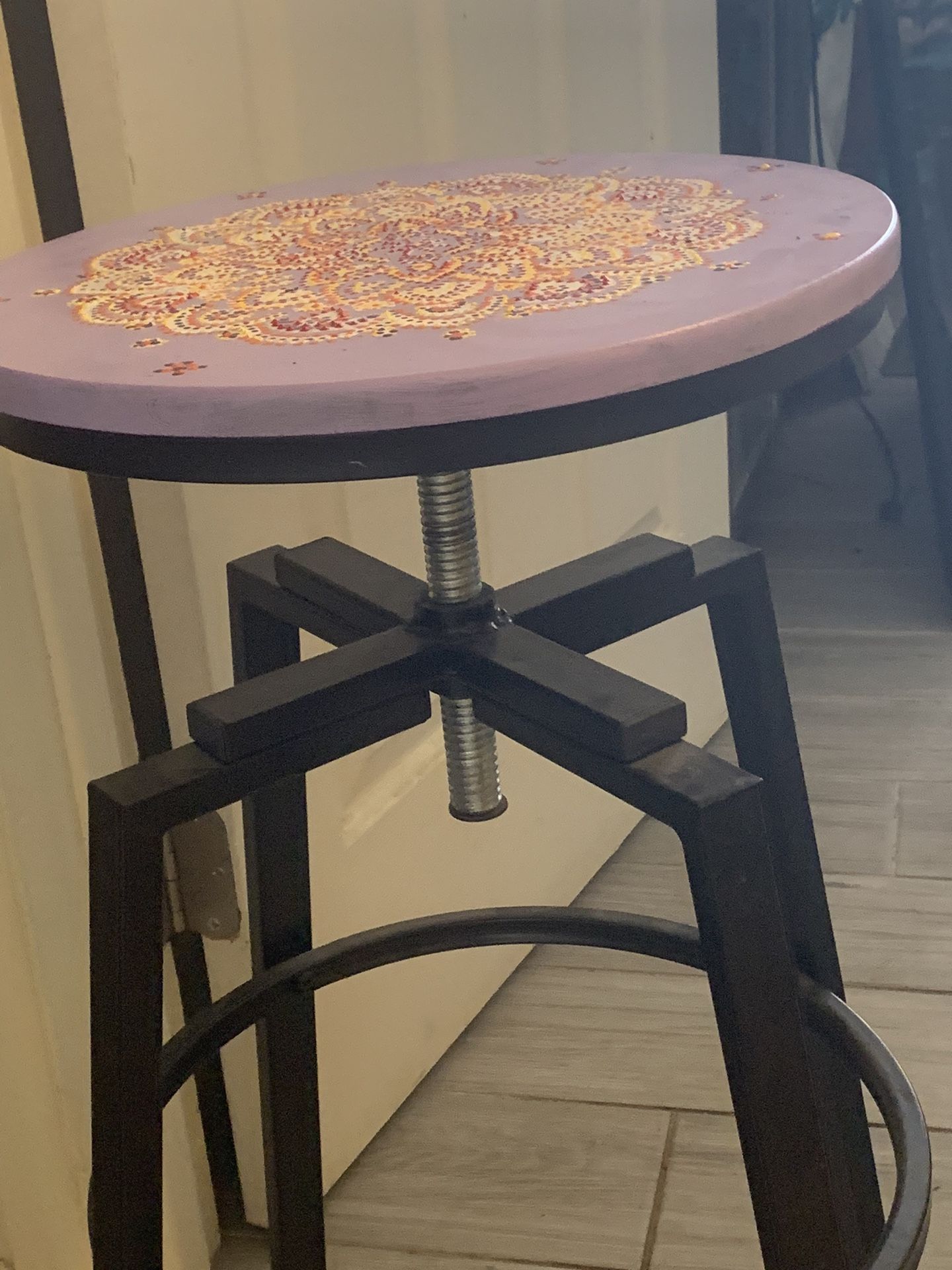 Hand painted, swivel top adjustable height, metal and wood bistro bar stool
