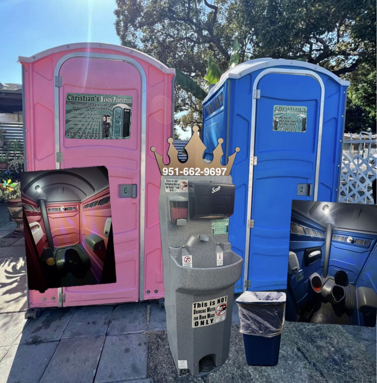1 porta potty = 90$ 1 portable sink = 30$ 1 porta potty with a sink inside it = 110$ 2 porta potties 1 portable sink = 200$ 90$ un baño 30$ el lavamanos portátil 110$ un baño con el lavamanos adentro 200$ dos baños y el lavamanos portátil ☀️💡➕🔌💡 2-3 🧻 Seat cover paper Hand sanitizer dispenser Trash can Urinal with scented screen Blue deodorizer inside the tank Porta potty Porta potties Baños portátiles Portable toilets