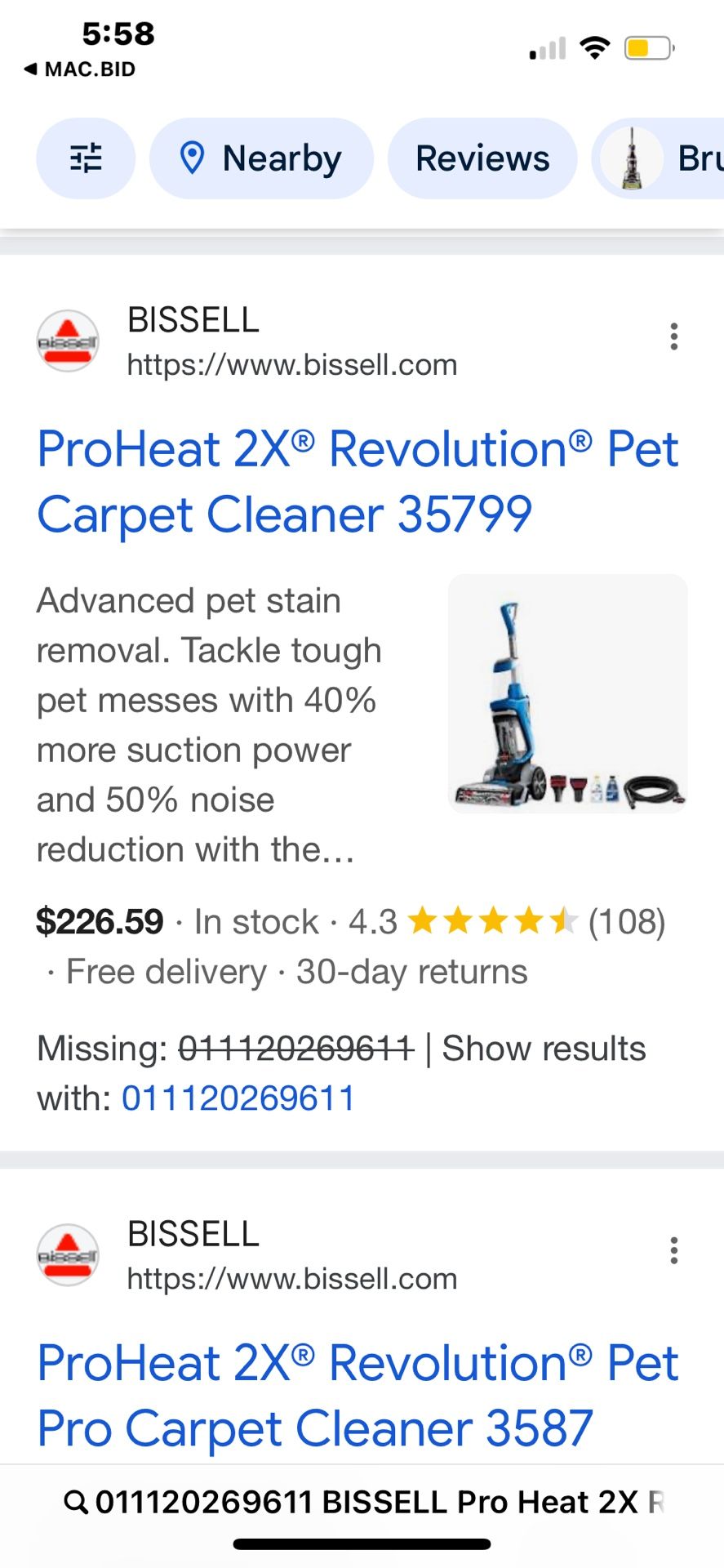 bissell proheat 2x revolution pet, 175 OBO brand new never used