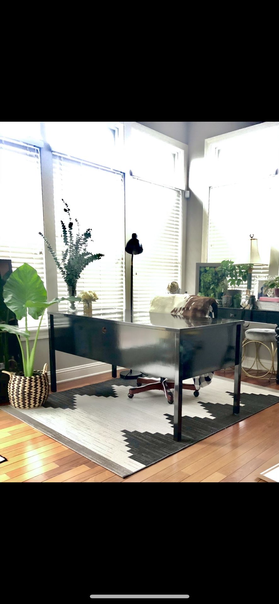 Large Black Desk With Gold Inlay Detail