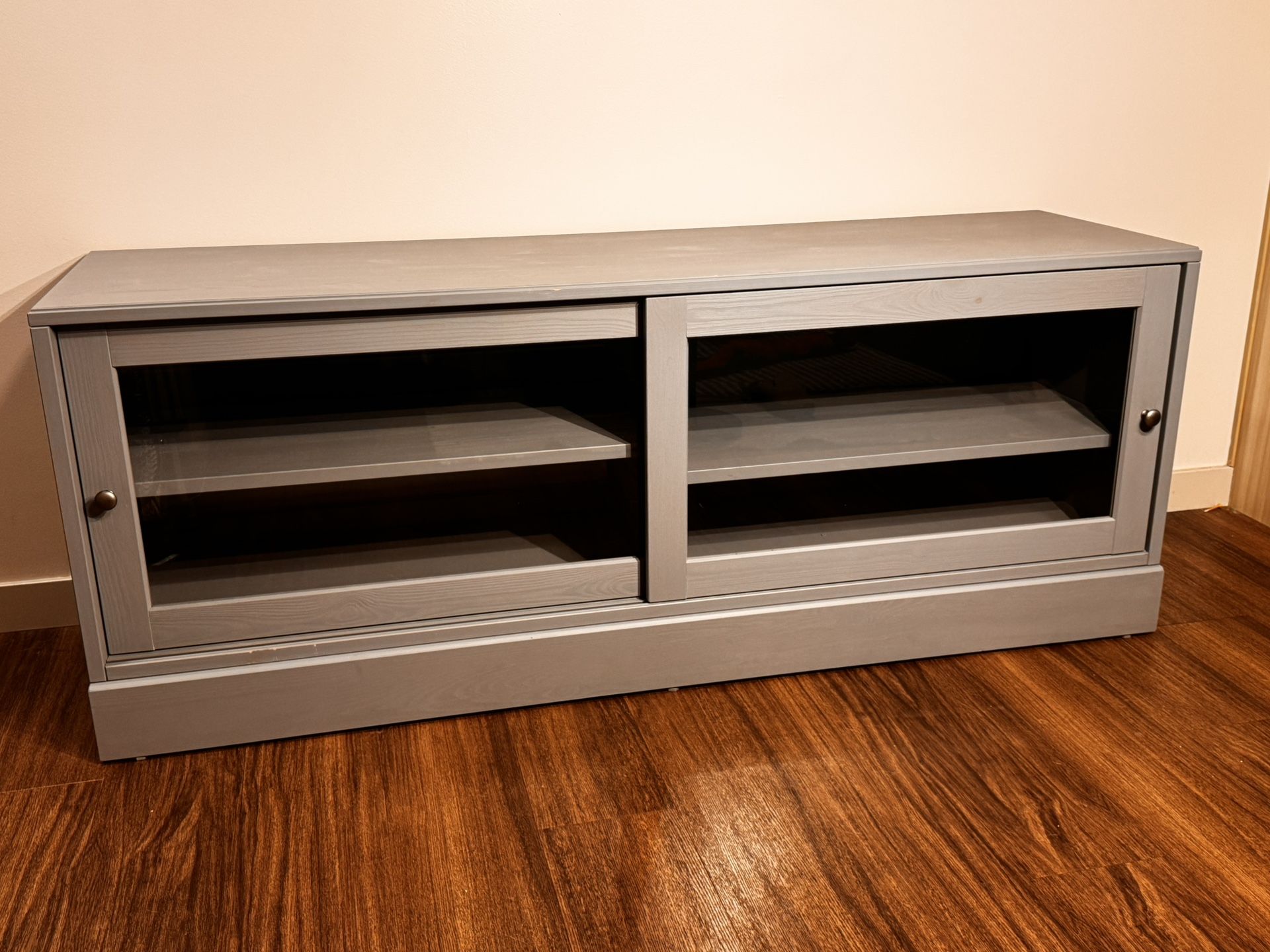 Beautifully built from solid pine and finished in a sophisticated matte gray wash, this credenza offers a clean, architectural presence while showcasing the natural wood grain. Designed for elegant storage and display, it transitions seamlessly from a dining room or entryway statement piece to a high-end media console if desired. Key Details: —> Handcrafted look with solid pine construction for lasting quality —> Glass-panel doors framed in sleek lines for a contemporary profile —> Adjustable interior shelving for curated storage; from serveware to tech components —> Refined modern finish that pairs beautifully with minimalist, Scandinavian, or transitional interiors Confirmed Dimensions: Width: 63” Depth: 18 ½” Height: 24 ⅜” Condition: New/Excellent. Never used, sat covered in a vacant residence. Price: $185 or best reasonable offer. Free delivery available within a reasonable distance from downtown Seattle.