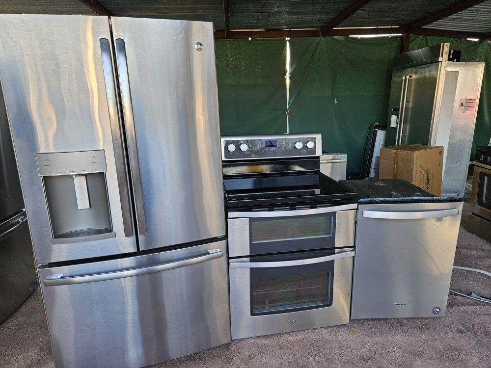 I have some very nice stainless steel kitchen appliances refrigerator is a standard size 36-in wide by 69 tall 32-in deep stoves also standard size 30 in wide dishwasher is 24 in wide everything works great tell me what the 30-day warranty we can also help deliver for a small fee