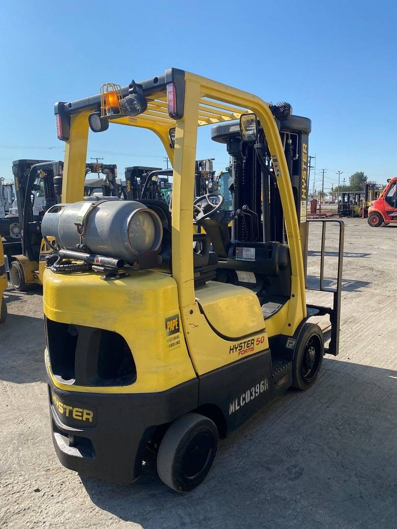Year: 2016 Manufacturer: Hyster Model #: S50ft Serial #: H187V06434P Subcategory: Cushion Tire 4 Wheel Sit Down (Indoor Warehouse) Type: Forklift Capacity: 5000 Mast: Quad Mast Mast Spec: 240 Fuel: LP Gas Side Shifter: Yes Condition: Used Hours: 9416